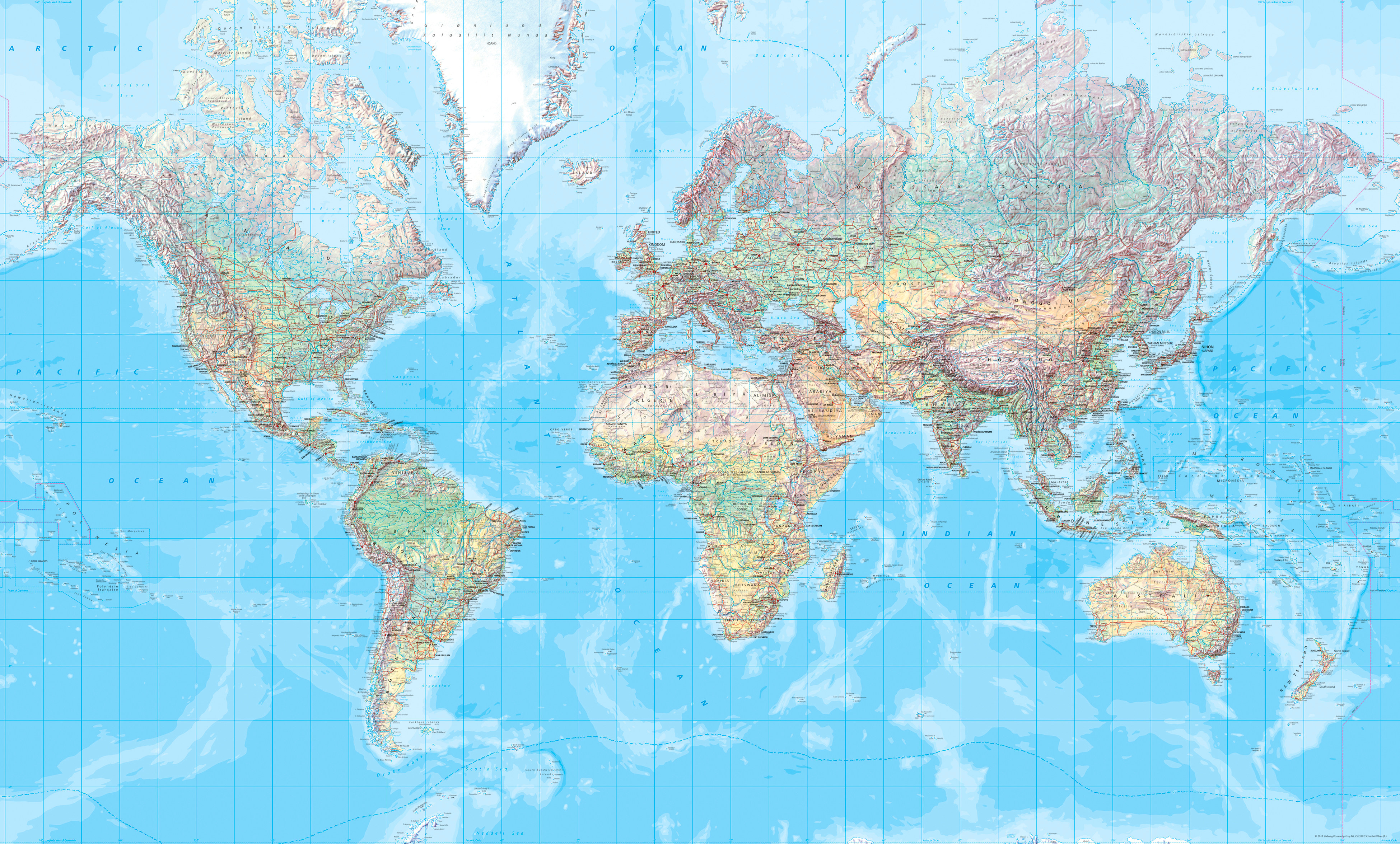 KÜMMERLY+FREY Plano-Weltkarte 202x123cm 325994015 physikalisch 1:20 Mio.