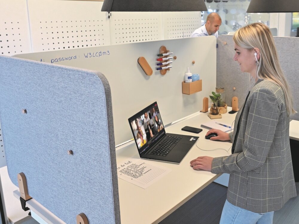 - Erleichtert die Zusammenarbeit in sicherer Entfernung und schafft zugleich einen persönlichen Raum an Ihrem Schreibtisch