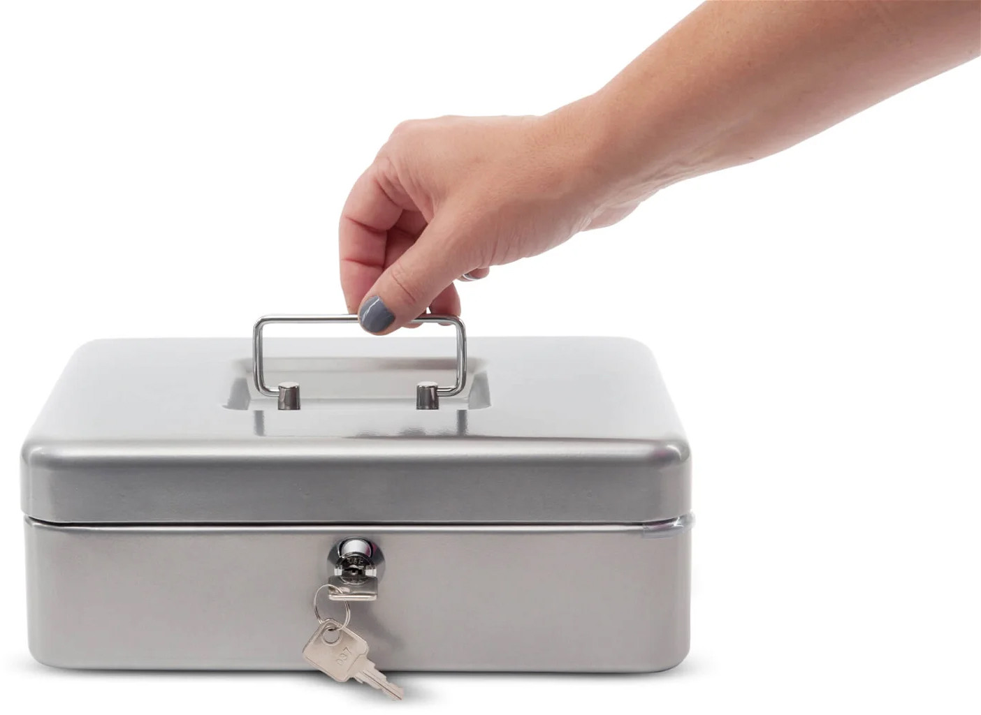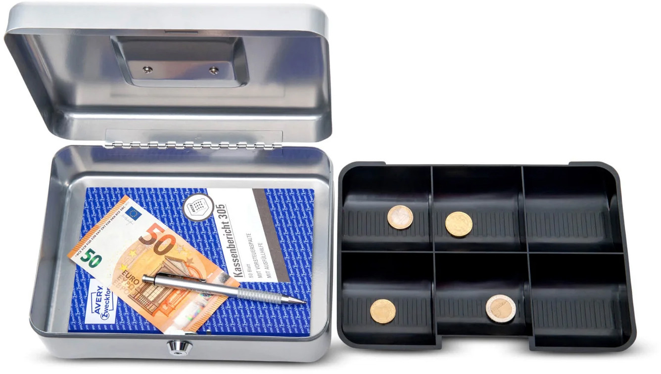 Die Geldkassette von MAUL ist aus lackiertem Stahl und hat einen Münzgeldeinsatz aus Kunststoff. Dank dem Sicherheitszylinderschloss ist Ihr Geld sicher aufbewahrt.