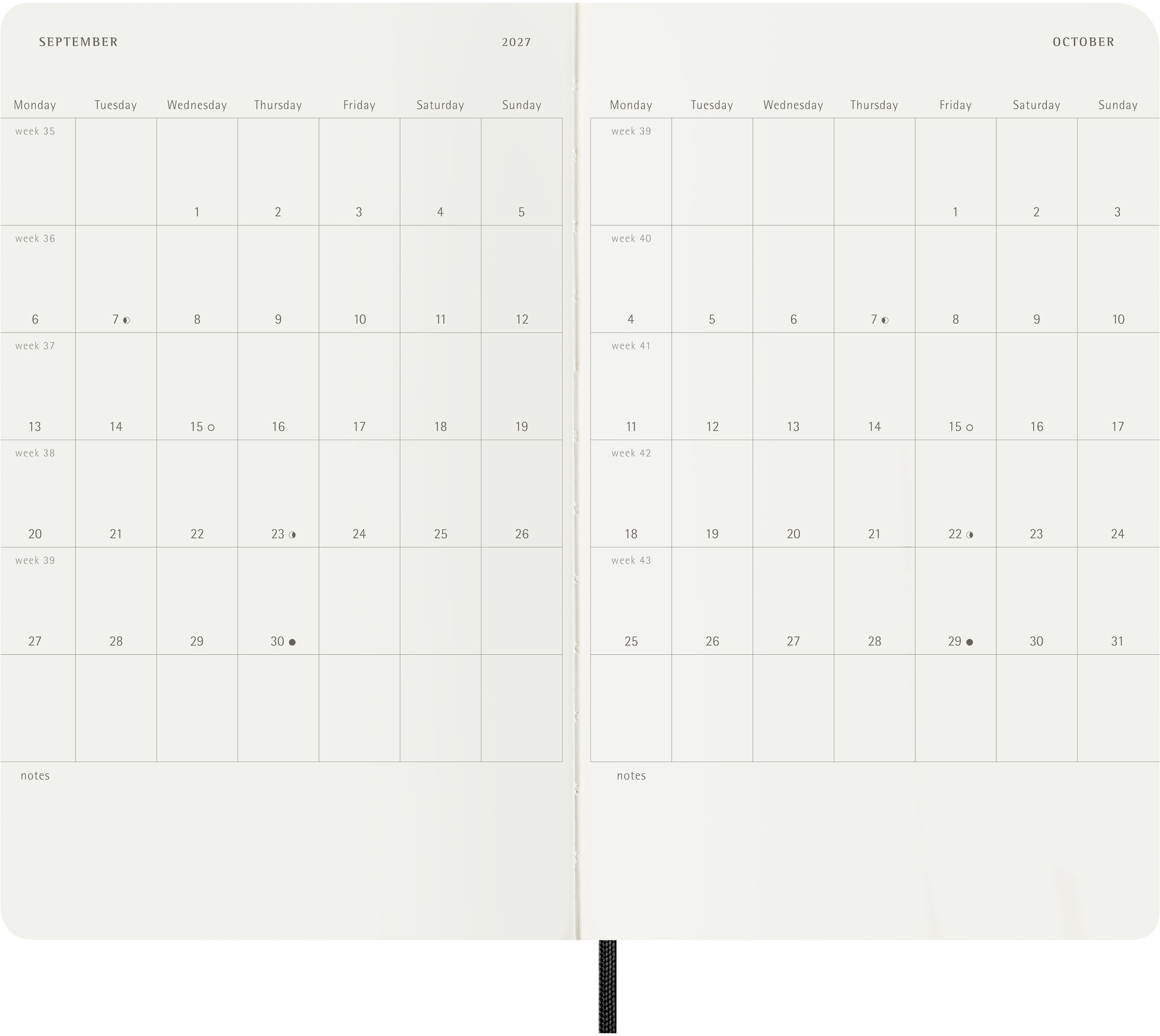 Der Moleskine Tageskalender ist von Juli bis Dezember datiert. Der beliebte Kalender mit einer eigenen Seite pro Tag ist in der gesamten Farbpalette erhältlich um jeden Tag im Jahr ausführlich festzuhalten.
