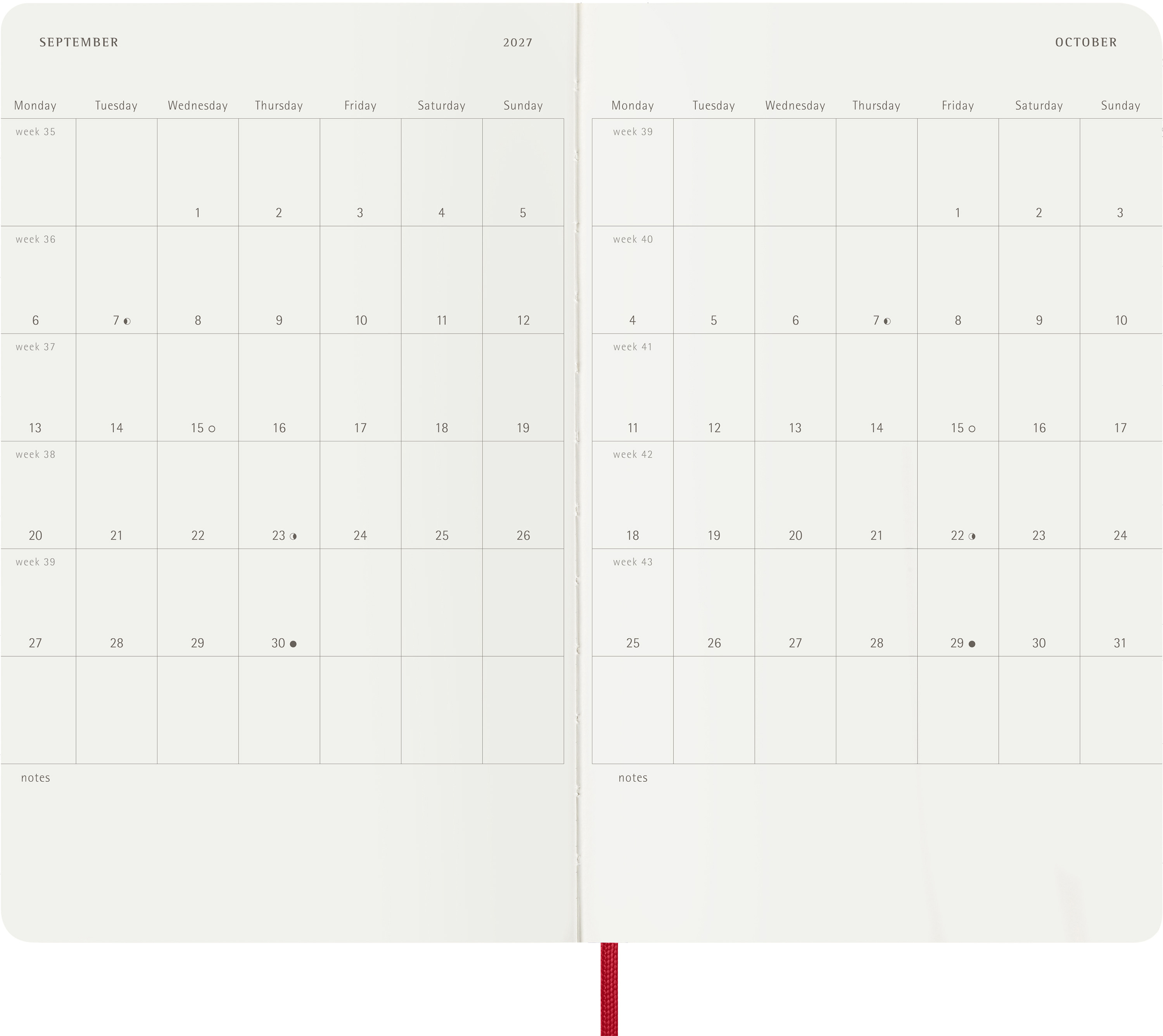 MOLESKINE Wochen-Notizkalender 26/27 DSF218WN3Y27 18M liniert SC rot 13x21cm