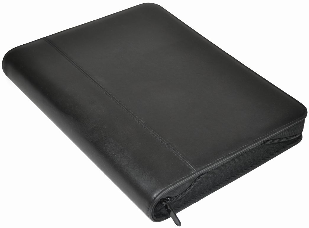 Die elegante Monolith Schreibmappe A4 aus Kunstleder ist der ideale Begleiter zu Geschäftsterminen oder für unterwegs. Die 3-teilige Mappe mit Steppnähten und Lederoptik bietet Schutz für Ihre Büroutensilien, verfügt über eine Ringmechanik zum Einordnen von wichtigen Dokumenten und ist ausserdem mit zusätzlichen Fächern für Kredit- und Visitenkarten ausgestattet. Durch den Reissverschluss sind ihre Dokumente einwandfrei geschützt. Mit dem integrierten Tabletfach, Taschenrechner und dem mitgelieferten Notizblock ist das mobile Büro immer da wo man es braucht.