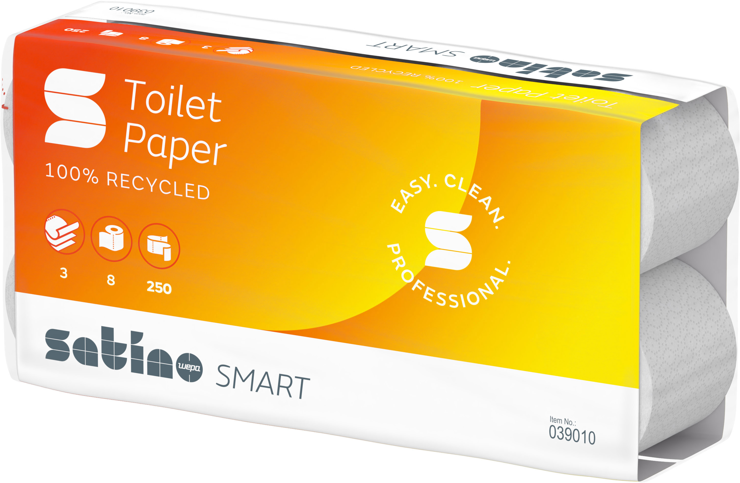 Satino Smart, 3-lagig mit Flächenprägung, 100% Recycling ideal für hochfrequentierte Toiletten, naturweiss.