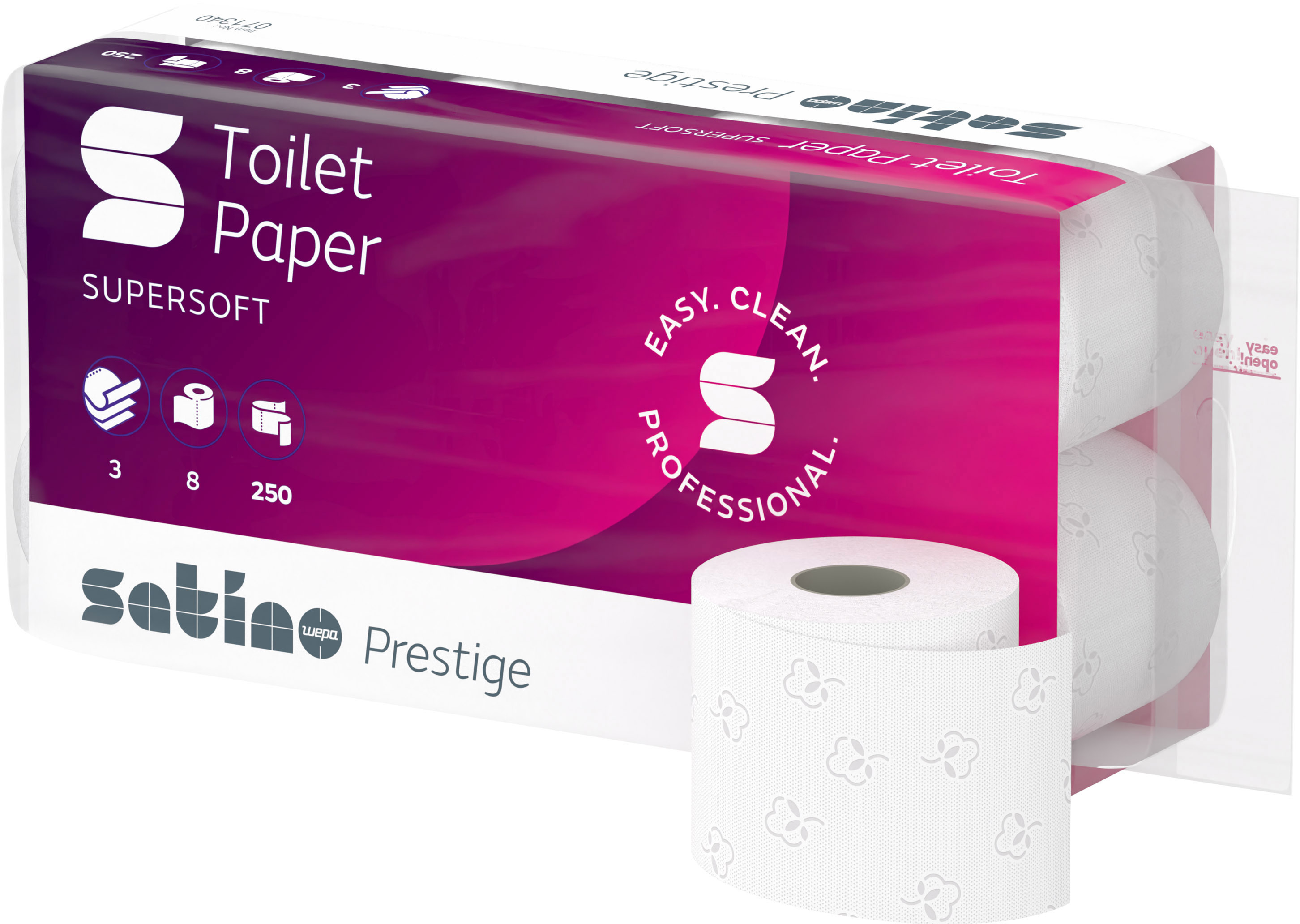 SATINO Toilettenpapier Prestige 572051 3-lagig, 8 Rollen à 250 Blatt