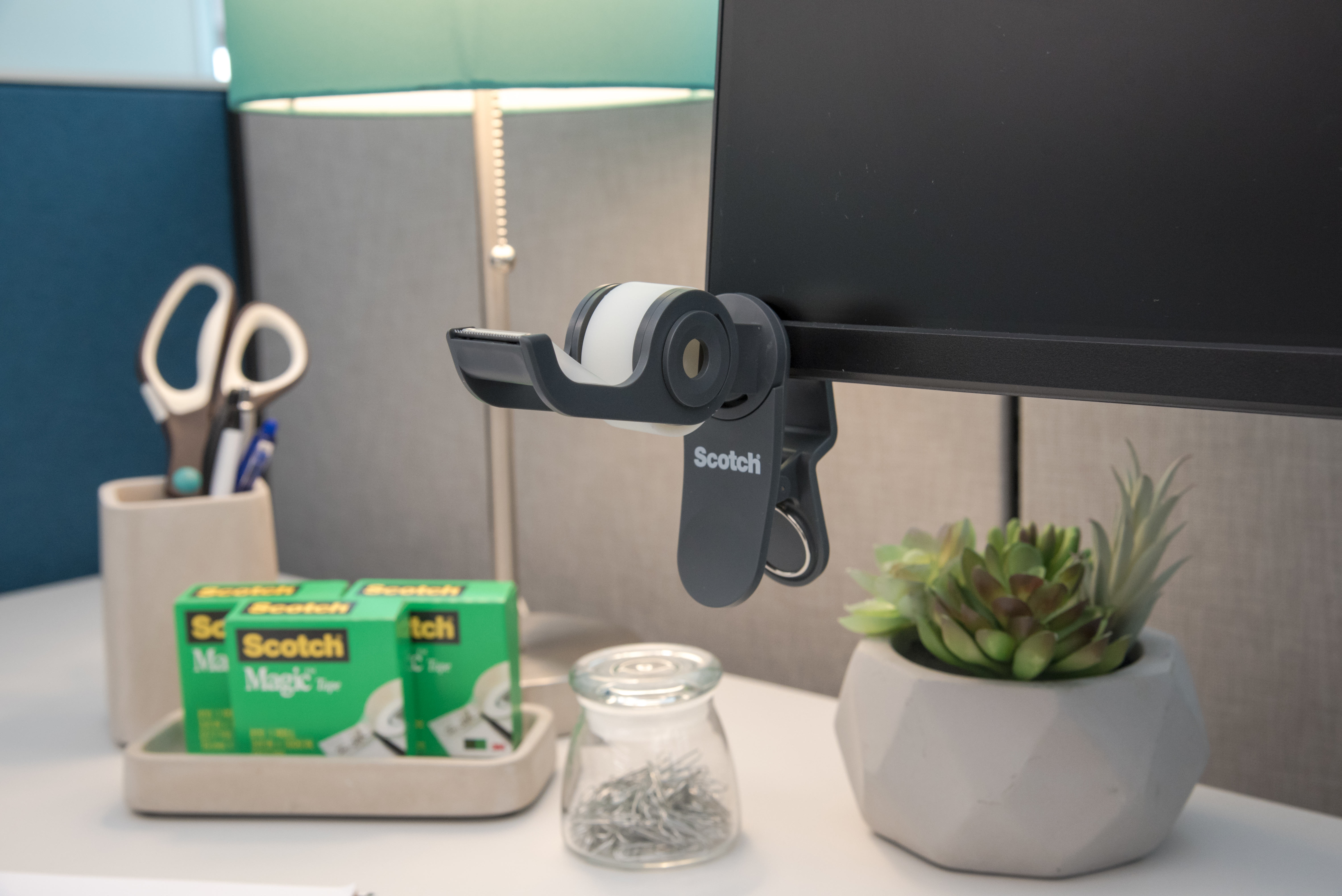Der Scotch® C19 Clip & Twist-Bandspender ist einzigartig und vielseitig. Es kann an mehrere Gegenstände wie Schreibtische, Monitorständer, Würfelwände und Regale geklippt werden, um Ihnen eine flexible Klebebandlösung zu bieten, wo immer Sie sie benötigen.
