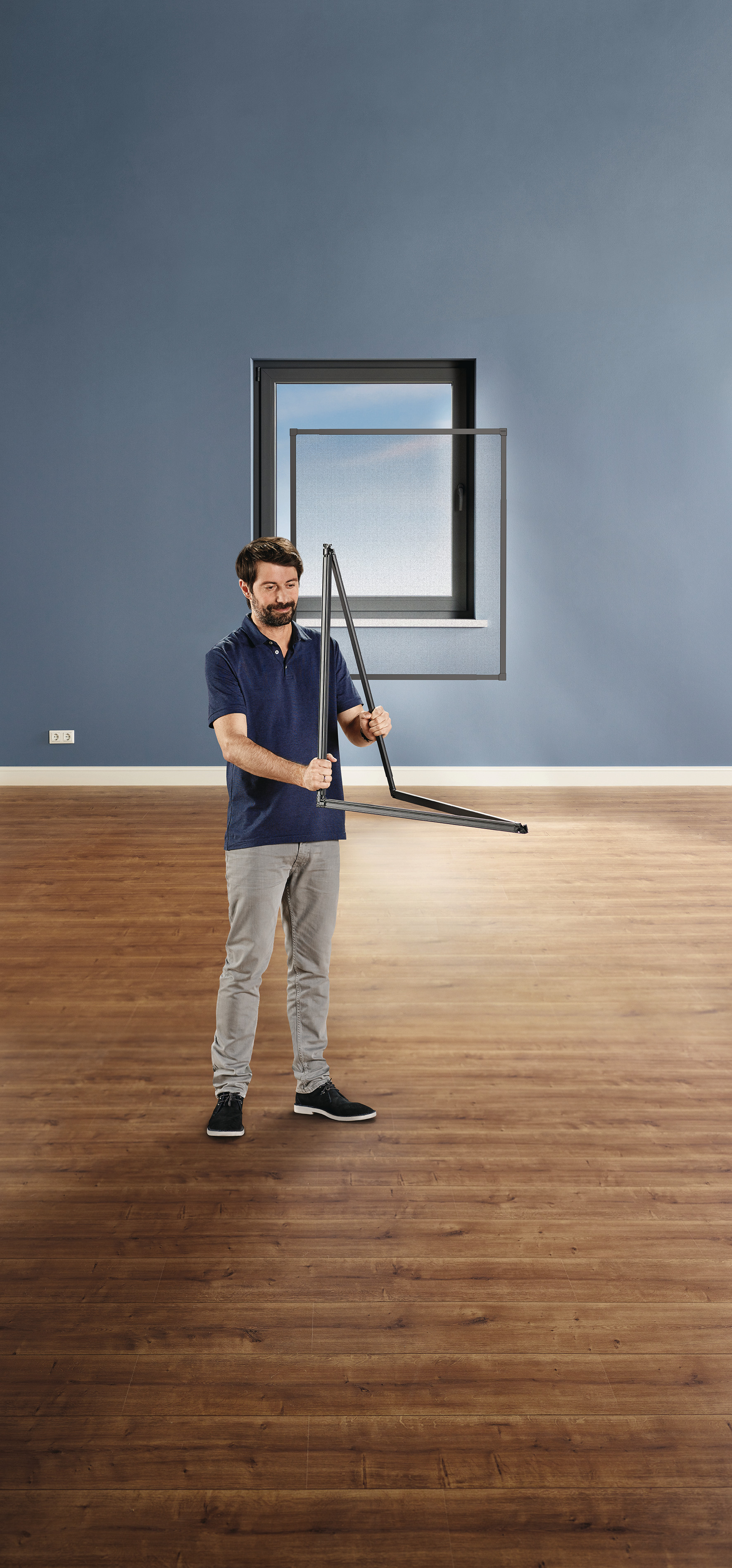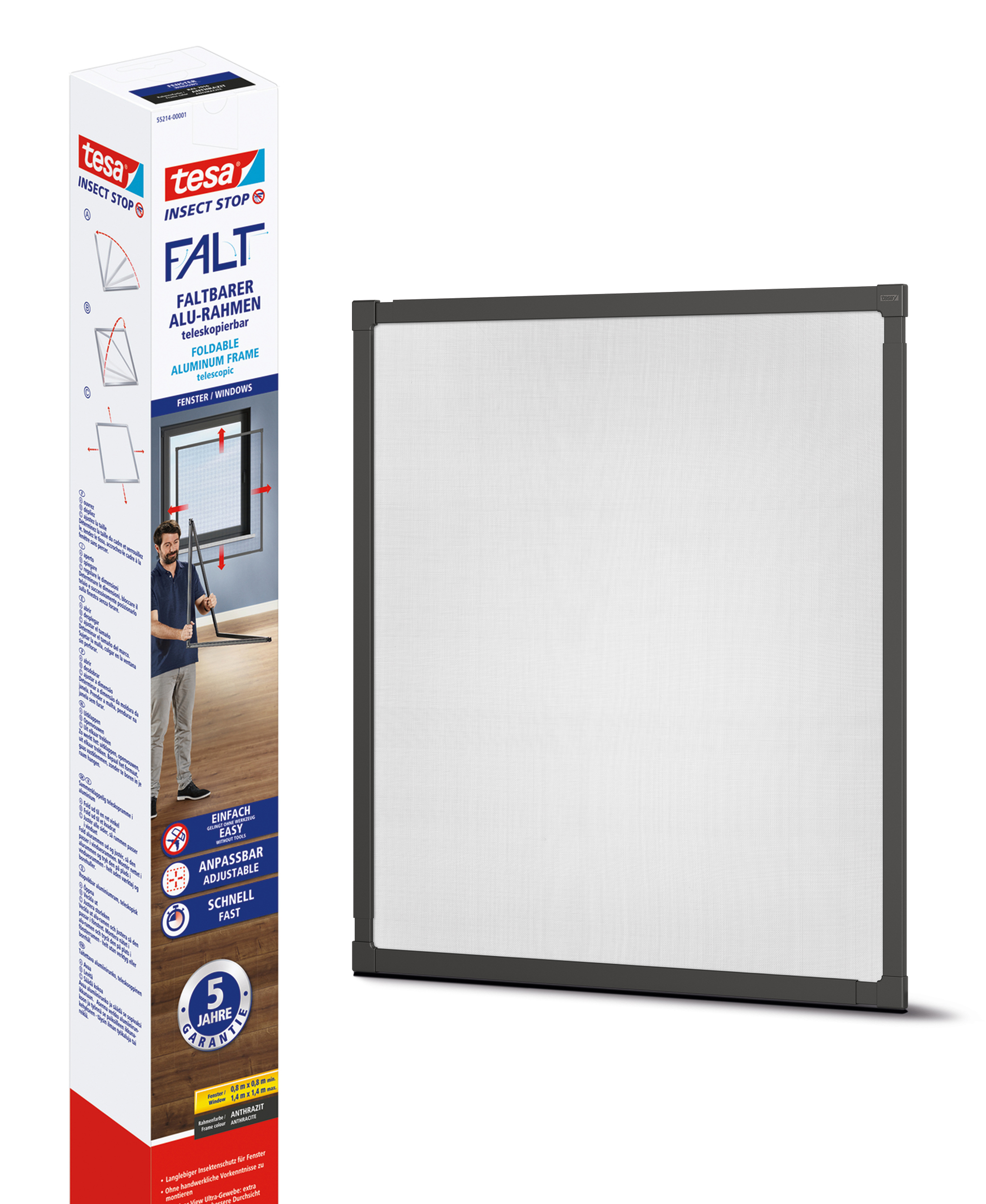 tesa® Insect Stop FALT - faltbarer Alu-Rahmen, teleskopierbar ist die langfristige Lösung, wenn es um Insektenschutz geht. Er ist das am einfachsten zu montierende und zudem frei einstellbare tesa® Fliegengitter für Fenster. Deshalb wird ausser einer Schere für die Montage nichts benötigt. Nur vier Montage-Schritte für das Fliegengitter ohne Bohren: 1. Rahmen entfalten 2. Teleskopprofile auf Mass schieben & fixieren 3. das Netz einpassen 4. Insektenschutz ins Fenster einhängen – fertig! Zudem sorgt das Clear View Ultra-Gewebe des tesa® Fliegengitters für bessere Durchsicht und Belüftung.