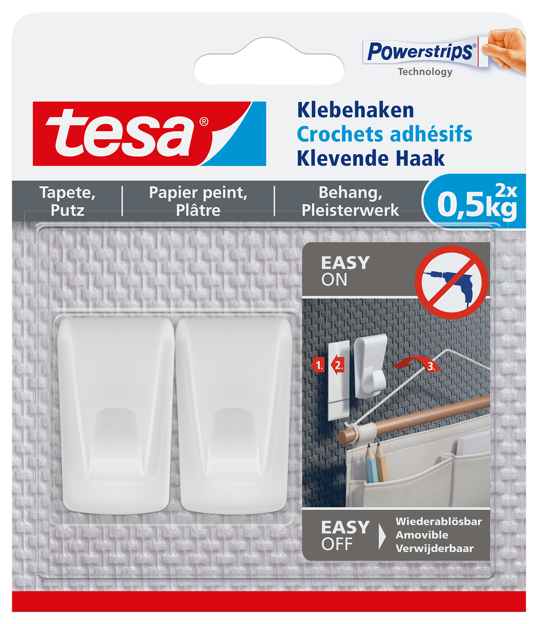 Produktinformationen "TESA Klebehaken 2x0,5kg 77780-00000 Tapete & Putz"