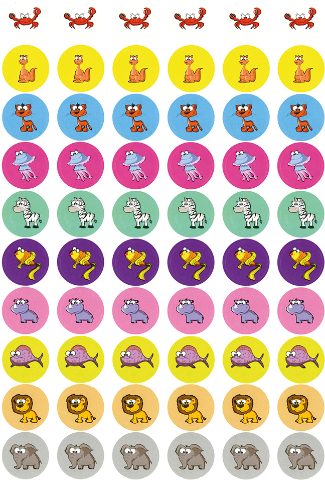 Dieses Set enthält 4 Bögen mit lustigen Tiermotiven, die ideal für unsere Lob-Sammelkarten oder das -Sammelbüchlein geeignet sind. 4 Bögen DIN A4 = ca. 240 Aufkleber, Grösse: ca. 25 mm ø