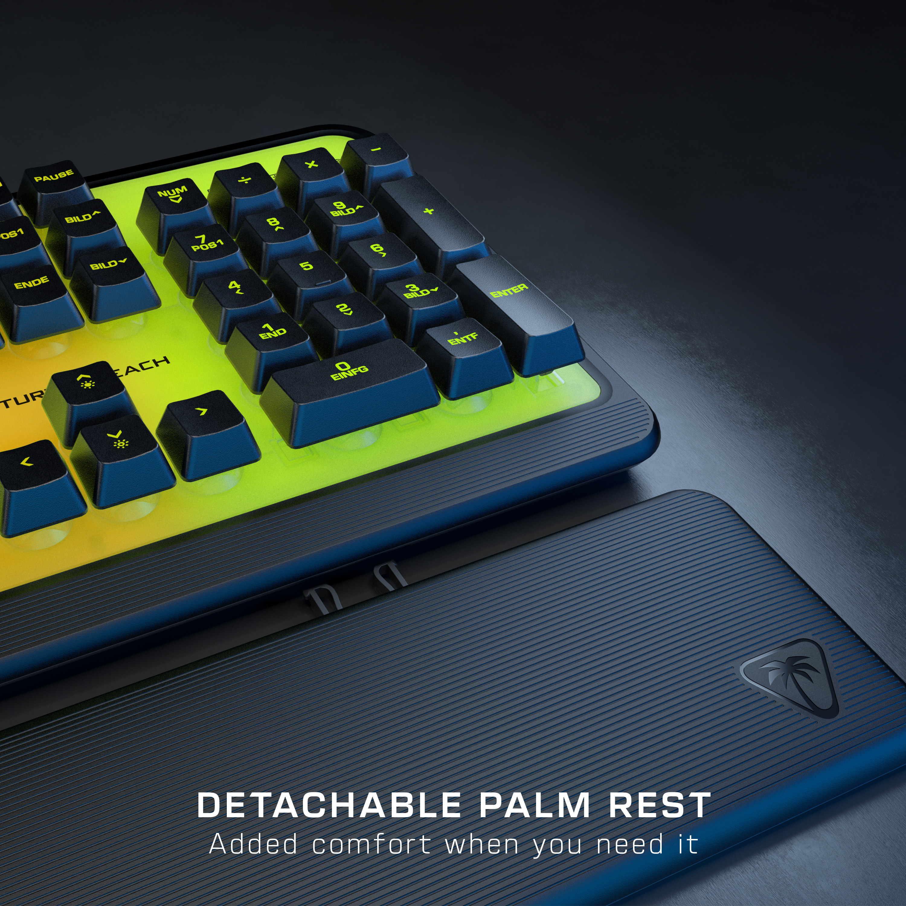 - ABNEHMBARE HANDBALLENAUFLAGE Passen Sie Ihre Einstellung so an, wie es für Sie am bequemsten ist, ob Sie nun entspannt mit der Handballenauflage tippen oder aggressiv spielen, wenn die Handballenauflage abgenommen ist.