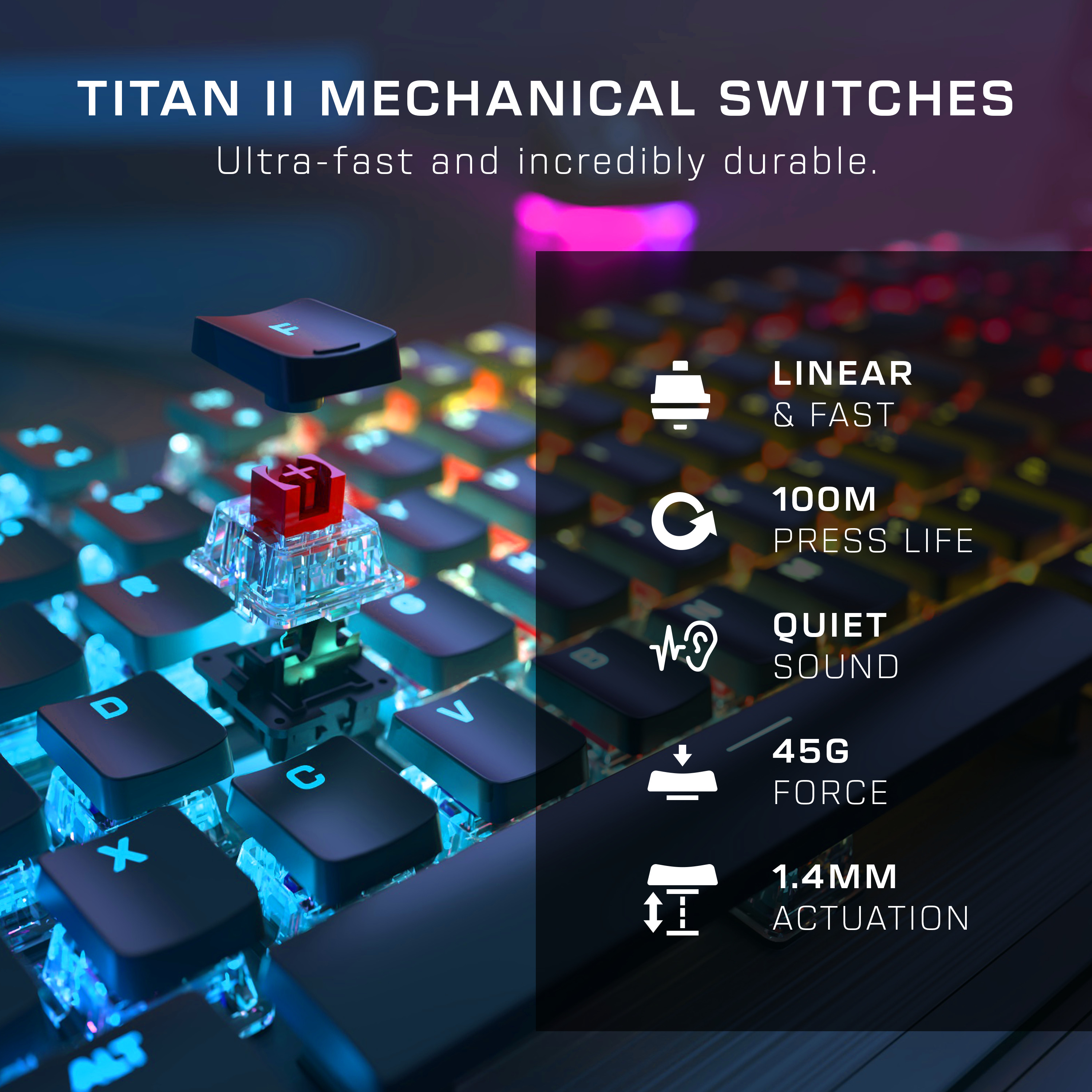 - Lineare mechanische TITAN II-ROT-Schalter mit einer Lebensdauer von 100 Millionen Anschlägen