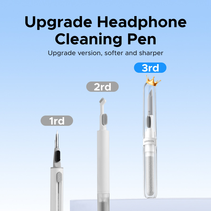 Der UGREEN Ohrhörerreiniger ist ein kompaktes 3-in-1-Reinigungswerkzeug, das Ohrhörer, Kopfhörer und deren Ladecases hygienisch sauber hält. Sein stiftförmiges Gehäuse beherbergt drei spezielle Reinigungskomponenten: eine feine Silikonspitze zum Entfernen von Schmutz aus kleinen Spalten und Lautsprechergittern, eine weiche Mikrofaserbürste zum Entfernen von Staub und Ohrenschmalz sowie einen beflockten Schwamm, der das Innere von Ladecases schonend und kratzfrei reinigt. Hergestellt aus robustem ABS und PC, ist der Reiniger leicht und handlich und somit ideal für den täglichen Gebrauch oder auf Reisen. Dank seines vielseitigen Designs eignet er sich auch zur Reinigung anderer kleiner elektronischer Geräte wie Smartphone-Anschlüsse, Tastaturen und Kamerakomponenten und bietet so eine sichere und effiziente Möglichkeit zur Pflege empfindlicher Technik-Accessoires.