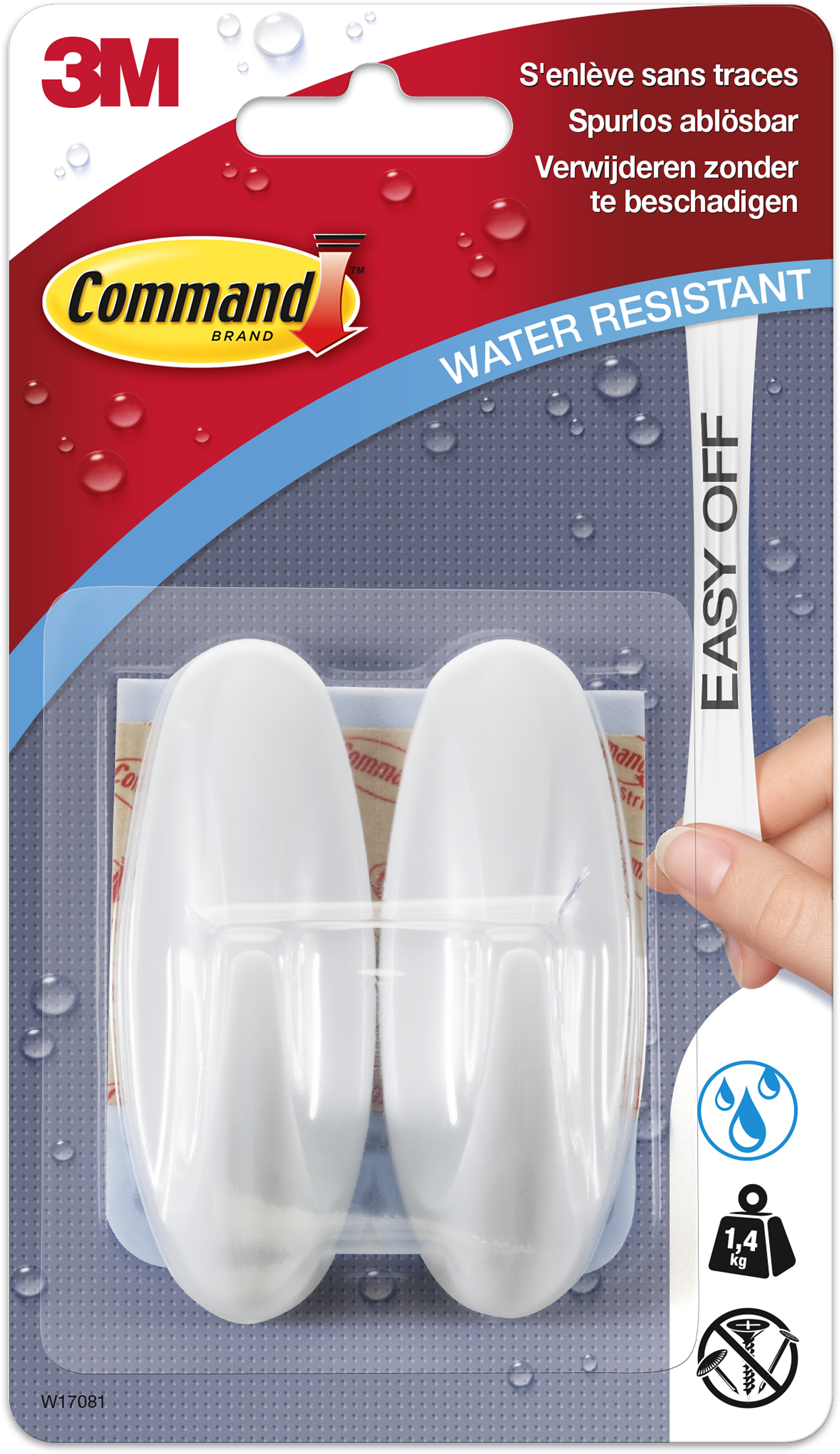 Ob Jacken, Kulturbeutel oder Badehandtücher, die Universalhaken halten alles Mögliche sicher auf nahezu allen Oberflächen, sind einfach und schnell anzubringen, die wasserresistenten Command™ Strips ermöglichen einen starken Halt sogar in feuchter Umgeb