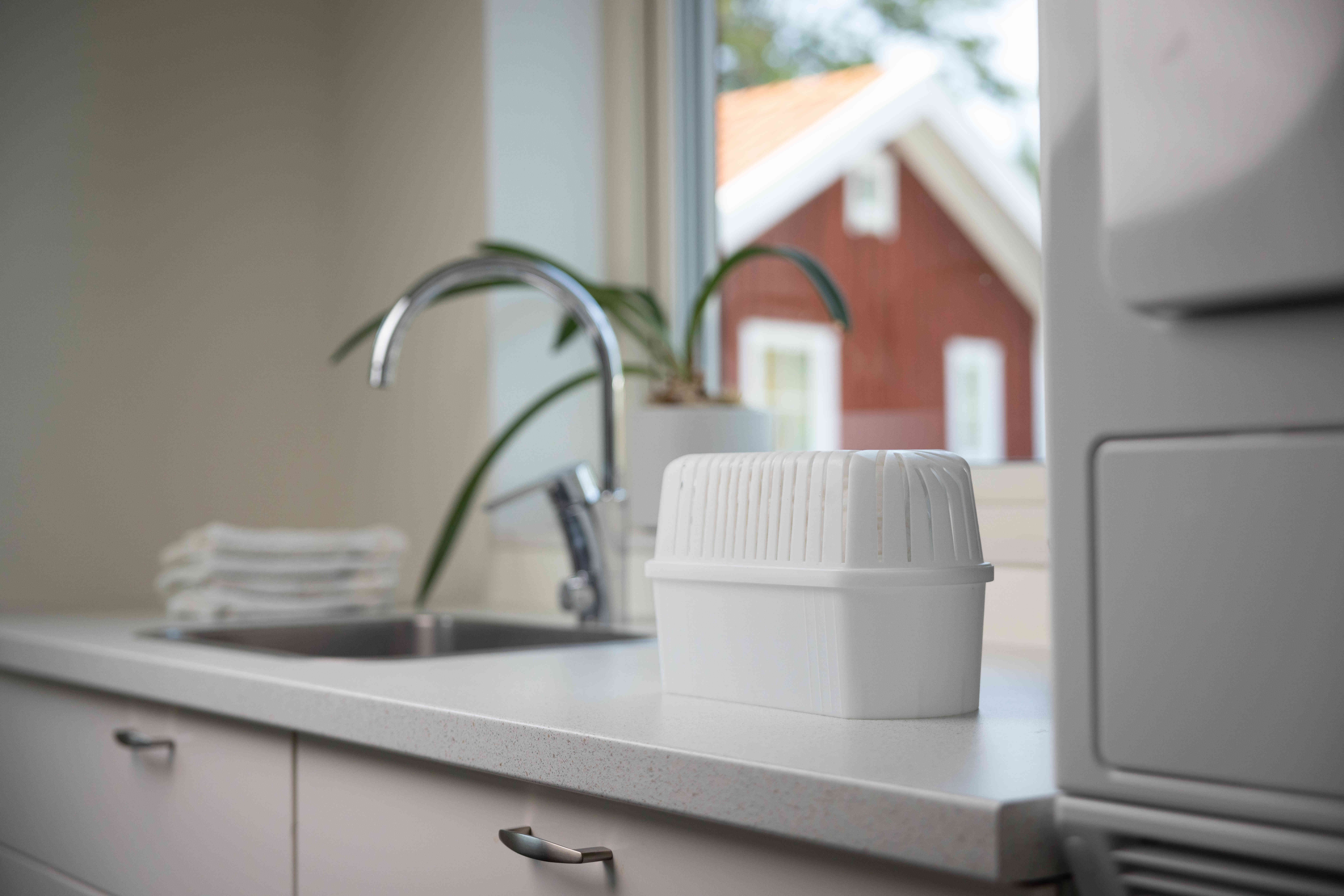Der Absodry Luftentfeuchter Mini Compact 1000g besteht aus einem dreiteiligen Luftentfeuchter aus Kunststoff und einem Beutel mit speziellen Entfeuchter Kristallen, die überschüssige Feuchtigkeit aus der Luft aufnehmen. Dies senkt wiederum die Gefahr von Schimmel und unangenehmen Gerüchen. Das Wasser in der Luft wird durch die Kristalle gebunden und tropft in die praktischen Auffangbehälter. Sobald die Kristalle aufgebraucht sind, wird das Kondenswasser einfach in den Abfluss gegeben. Sobald die neue Absodry Nachfüllpackung eingelegt wurde, kann das Gerät neu gestartet werden.