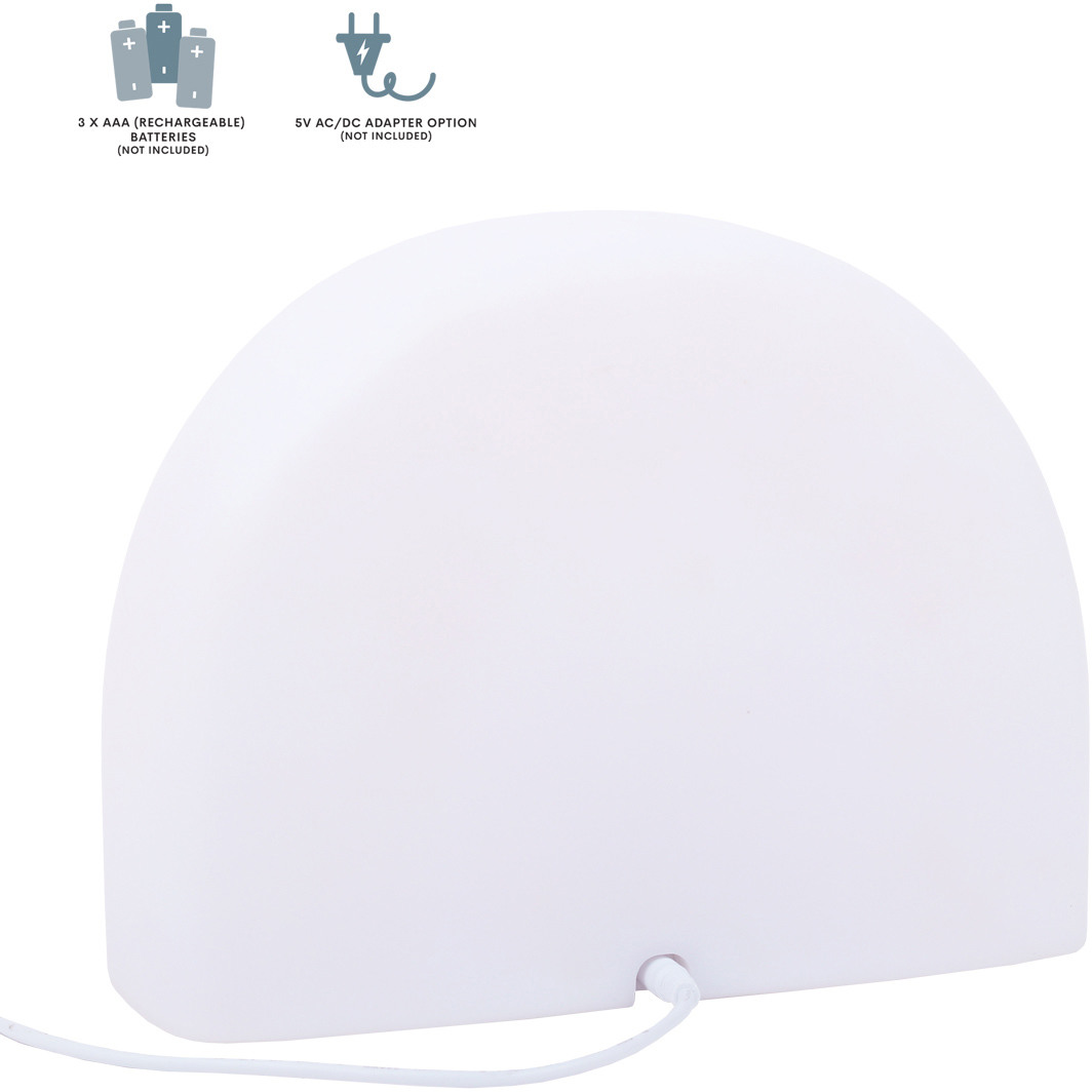 Halbkreisförmiges, kabelloses Nachtlicht mit einem rosa Regenbogen. Das sanfte Leuchten trägt zu einem sicheren Gefühl in der Dunkelheit bei, so dass Ihr Kind friedlich einschlafen kann. Die Lampe wird nicht heiß, ist kabellos und daher leicht zu transportieren oder mitzunehmen.