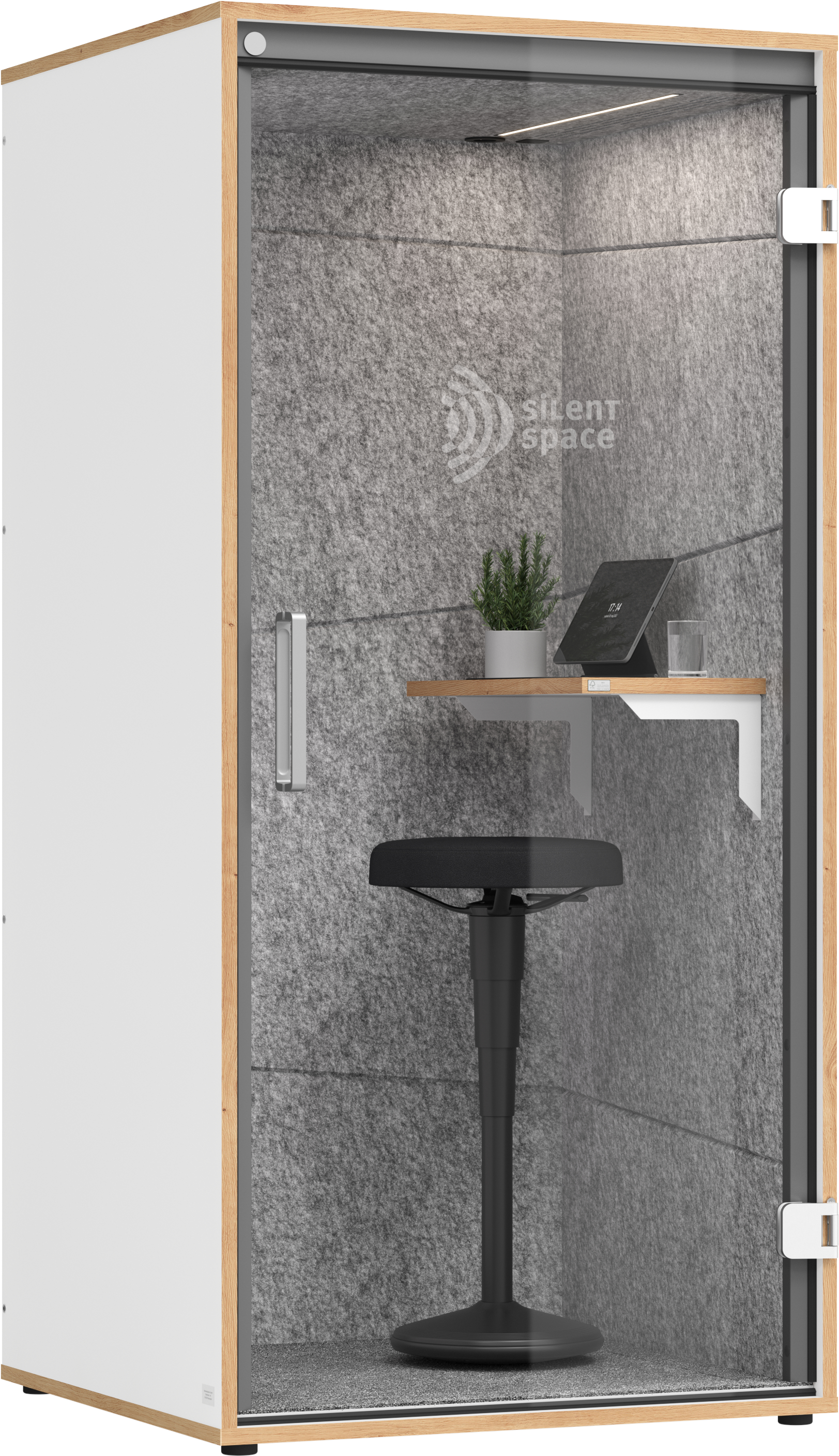 Die Raumlösung "Harmony" bietet eine ideale Lösung für ungestörtes Telefonieren und konzentriertes Arbeiten in offenen Büroumgebungen. Dank hochwertiger schalldämmender Materialien schafft sie eine angenehme Ruhezone, frei von störenden Geräuschen und Ablenkungen. Ideal geeignet für eine günstige und einfache Raum-in-Raum Lösungen. Die wände bestehen aush 25 - 50mm dicker melaminharzbeschichteter Spannplatten. Die Innenwände sind mit 30mm dickem Akustikvlies mit progressiver Dichte ausgestattet.