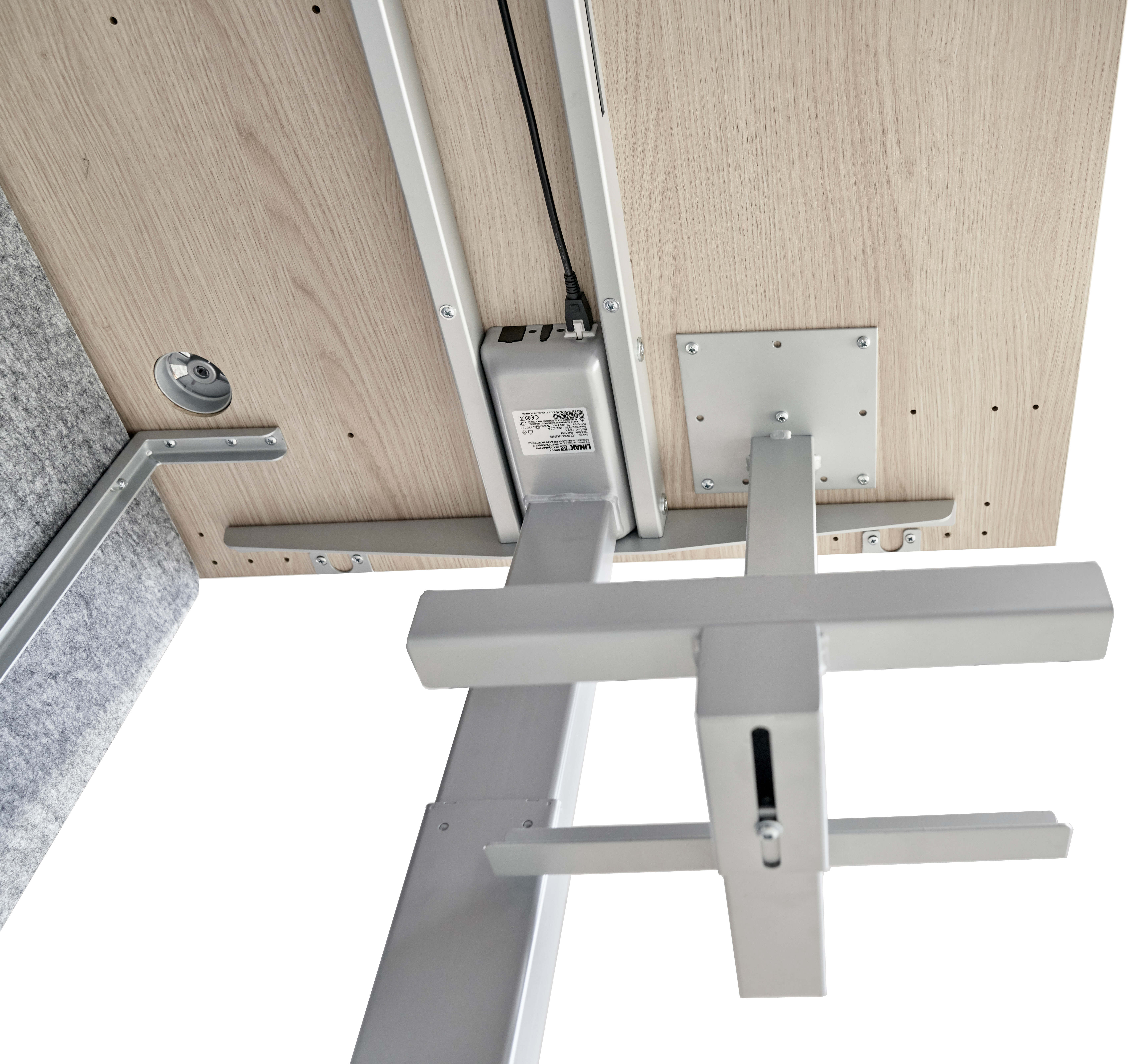 - Kann an beliebiger Stelle unter der Tischplatte geschraubt werden