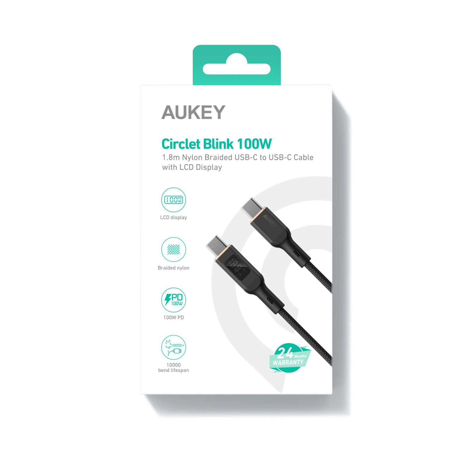 AUKEY Cable USB-C-to-C,LCD Display CB-MCC102 1.8m,Nylon Braided, 100W,Bl.
