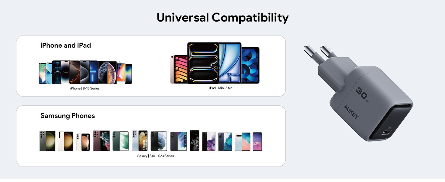 AUKEY Comet Mini 30W GaN PD PA-C1 1-Port, Wall Charger Grey