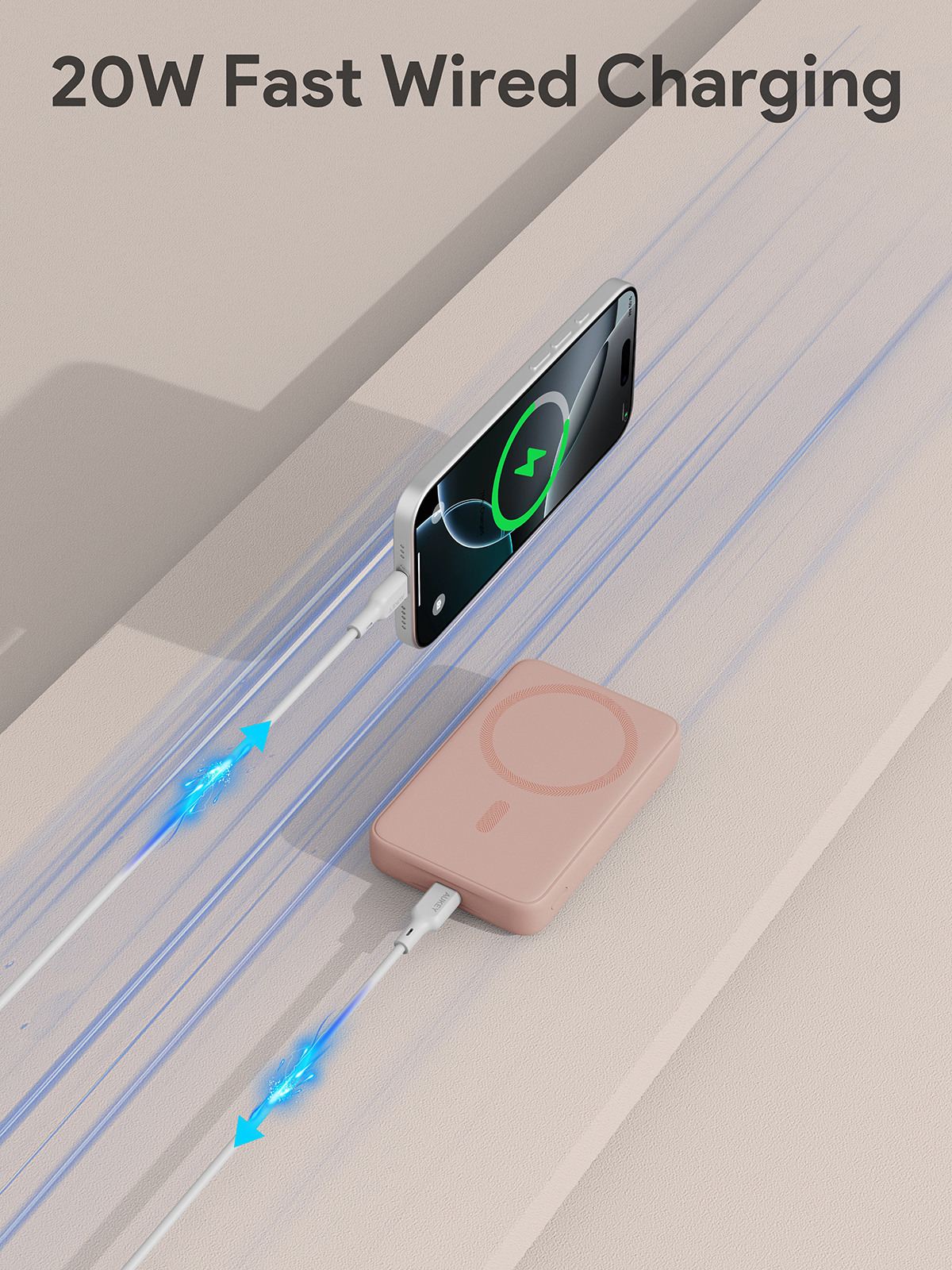 Slim20mmDesign:Schlank und tragbar, passt leicht in Taschen oder Beutel 7.5WMagSafeKompatibel: Bietet schnelles magnetisches kabelloses Laden für MagSafe-fähige Geräte. Schnelles kabelgebundenes Aufladen: 18 W Eingang und 20 W Ausgang über USB-C für schnelle der Powerbank.