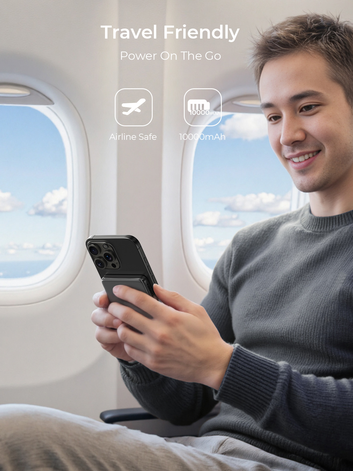 Die Powerbank ist dünner und leichter und passt perfekt in Ihre Tasche, Ihren Geldbeutel und Ihre Handtasche, es ist somit ein hervorragender Ladebegleiter, den Sie überallhin mitnehmen können. Das Metallgehäuse der Powerbank ist äußerst widerstandsfähig gegen Stürze, Abnutzung, Schmutz und hohe Temperaturen, und bietet somit außergewöhnliche Haltbarkeit und Schutz. Das Metallgehäuse sorgt außerdem dafür, dass die Wärme leicht abgeleitet werden kann, was einen stabilen internen Betrieb gewährleistet. Zertifiziert durch Qi2, ist es kompatibel mit Ihren Qi2-unterstützten Geräten und bietet ein schnelleres und sichereres Ladeerlebnis. Diese Powerbank bietet Ihnen zwei flexible alternative Methoden zum schnellen Aufladen 20W wired &15W Wireless. Ob kabelgebunden oder kabellos, Ihre Geräte bleiben immer mit Strom versorgt. Stellen Sie sicher, dass Ihr Telefon die ganze Zeit an der Powerbank befestigt und angeschlossen bleibt.