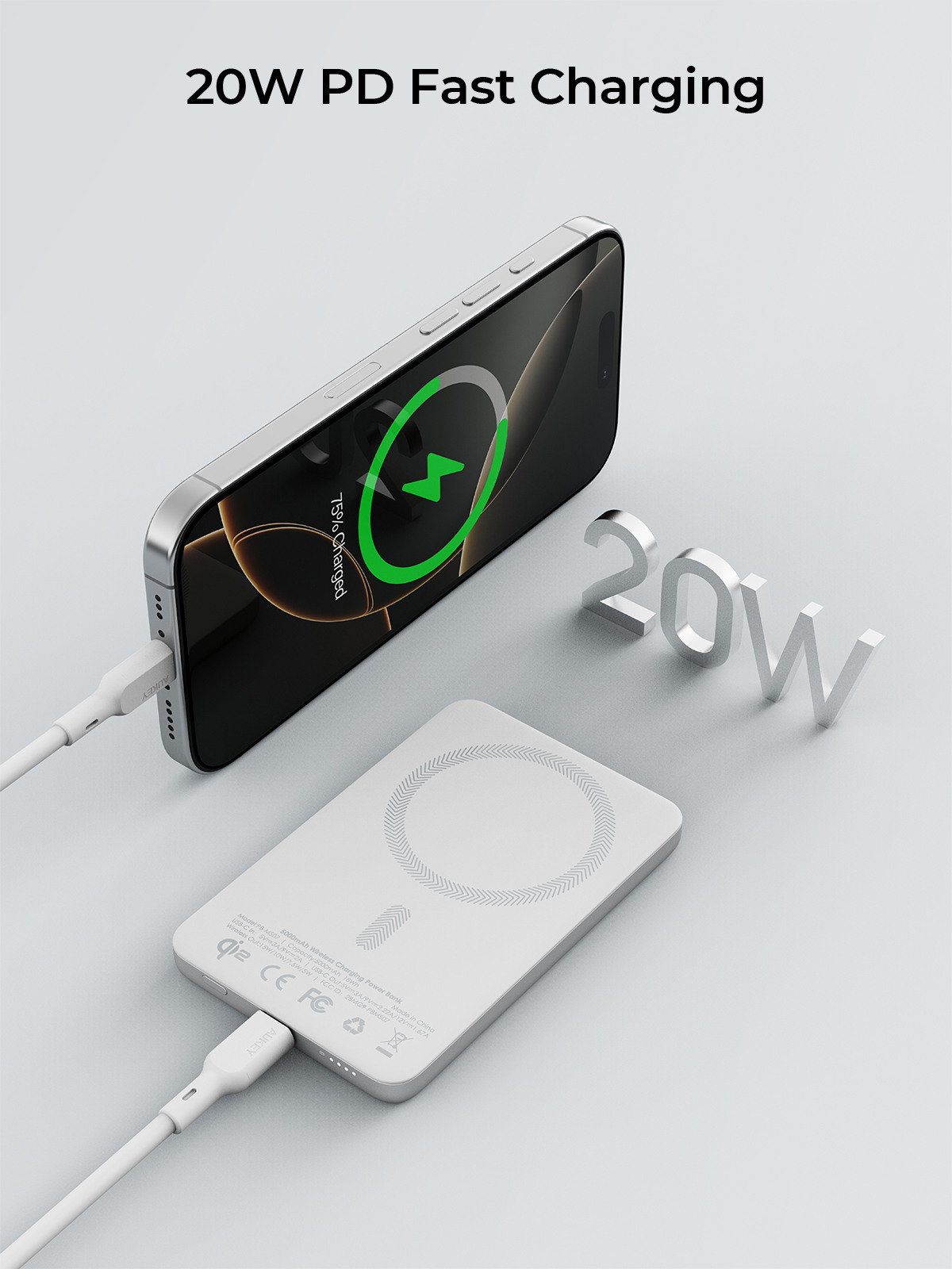 AUKEY MagFusion Slim 5000mAh PB-MS07 SW Powerbank Qi2 Wireless,White