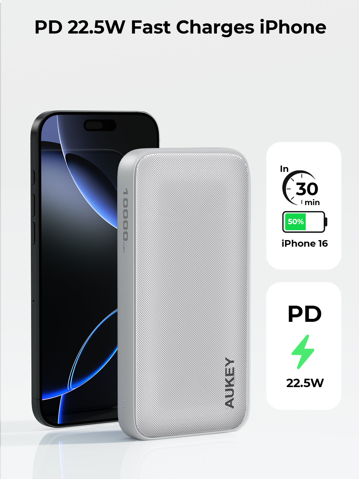 AUKEY Spark GO 10000mAh Plus Powerba PB-Y46P WH 20W Fast Charging, White