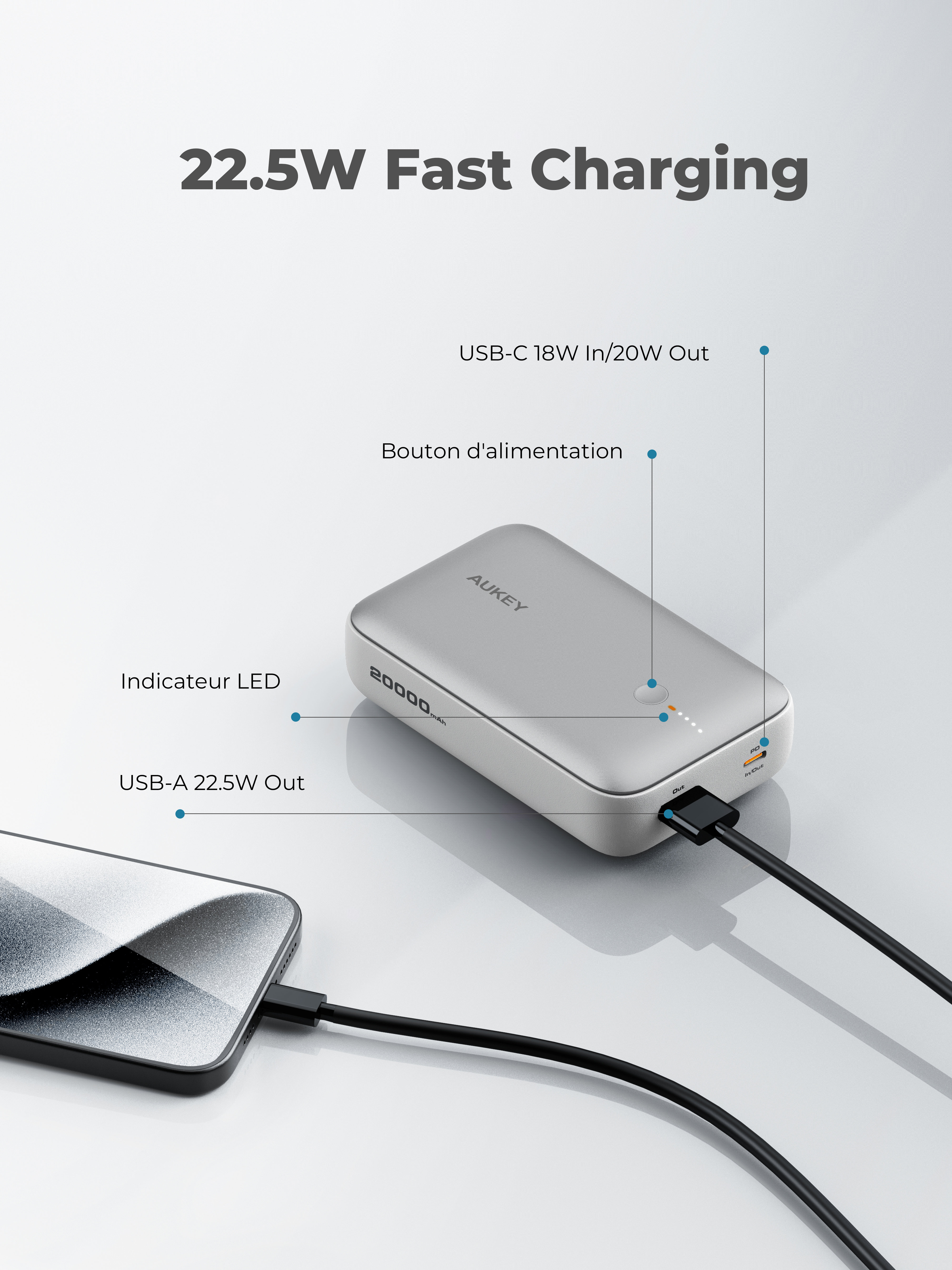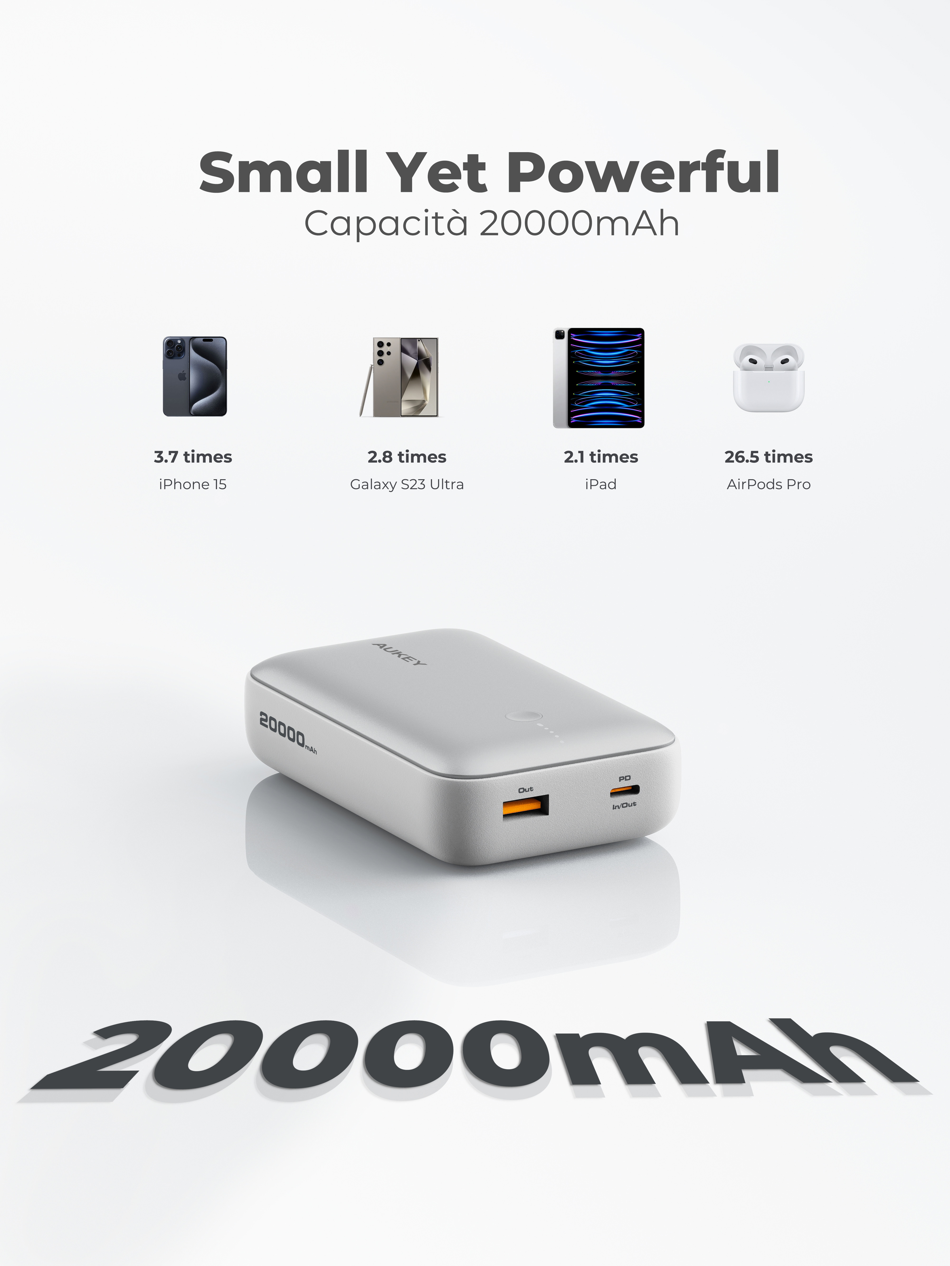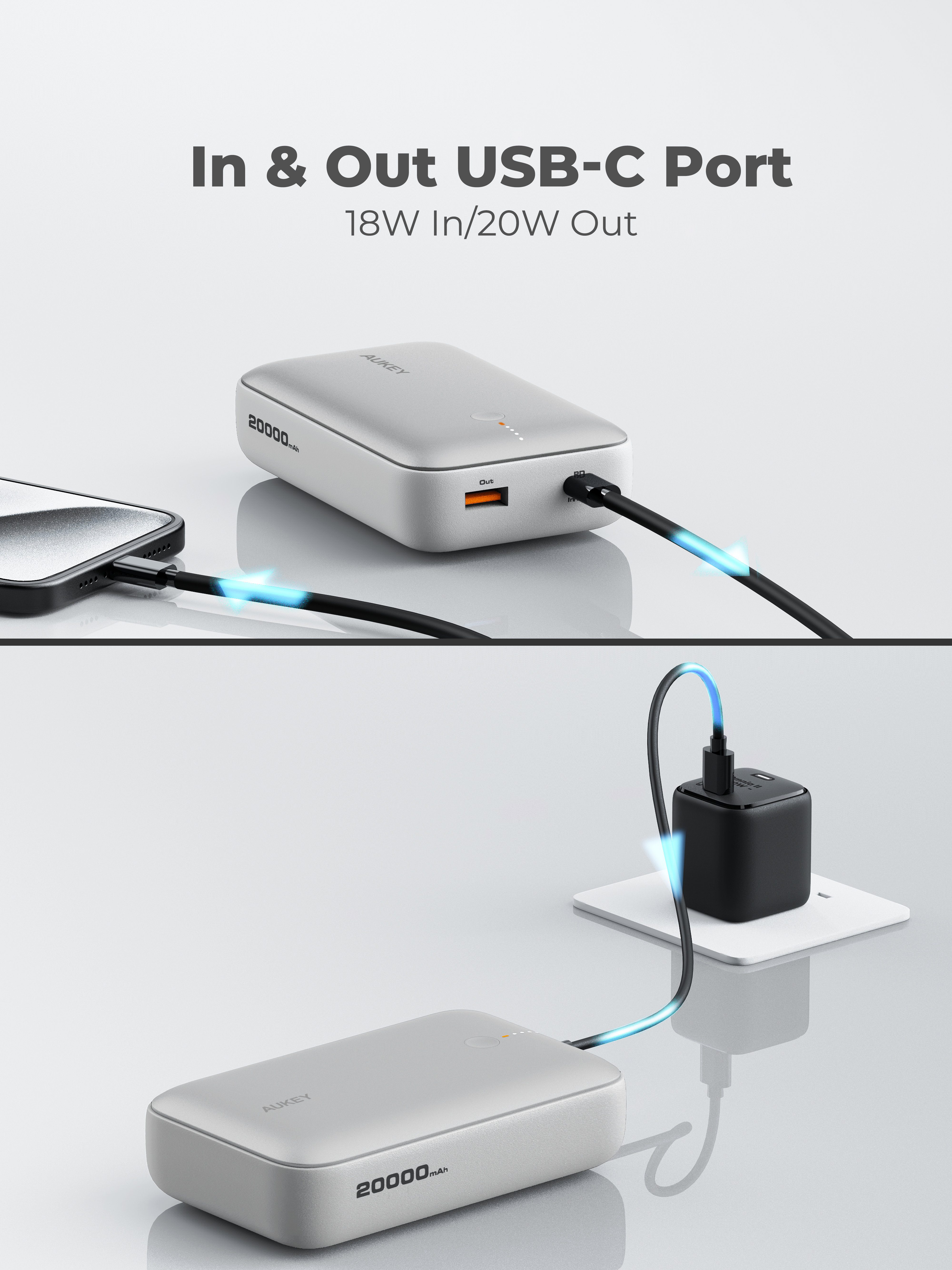 AUKEY Spark Mini 20000, 20W, PD,QC PB-Y57 Powerbank,White,USB-C,USB-A