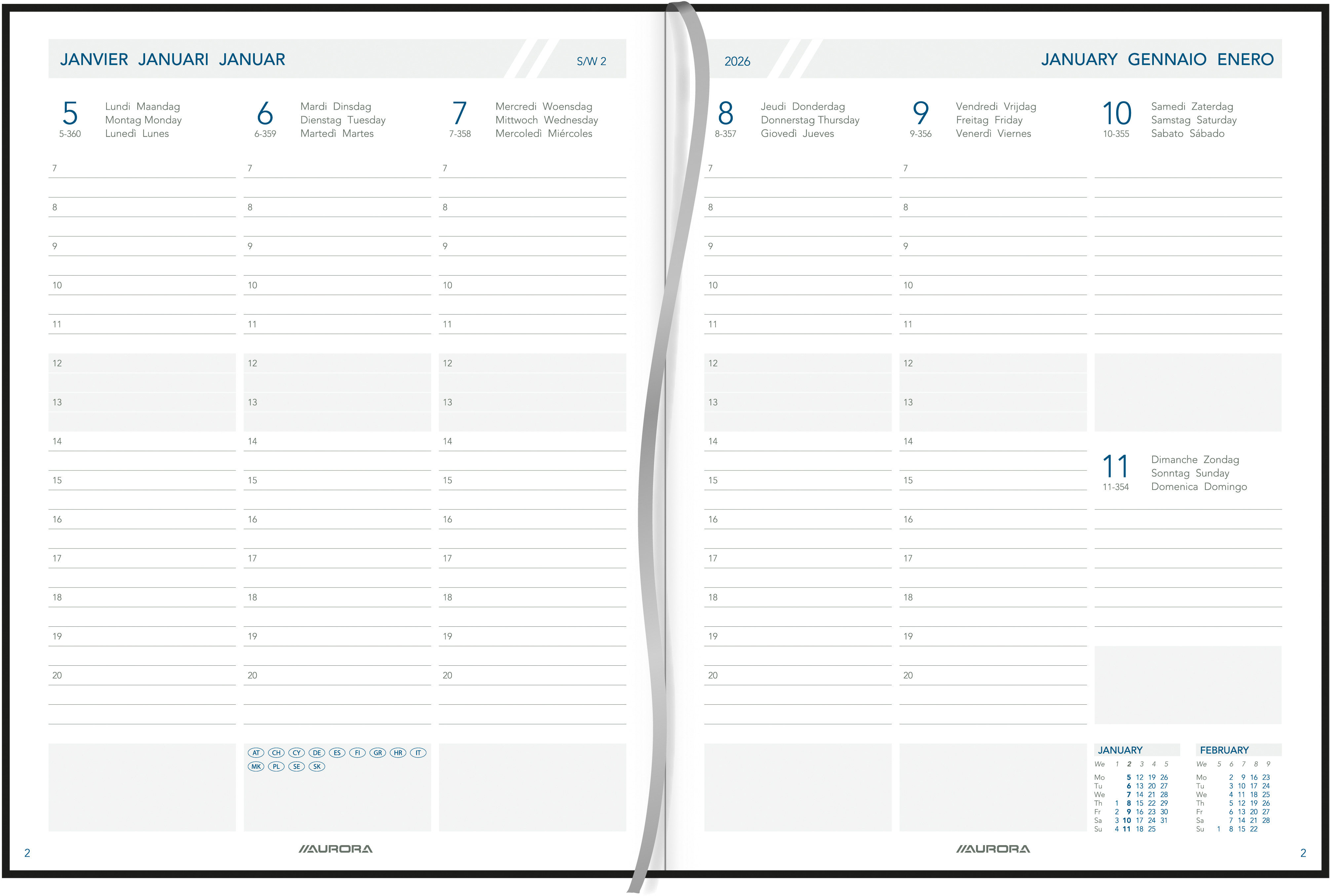 Produktinformationen "AURORA Agenda Canapa Business 2026 2912 1W/2S ass. ML 15M 17.5x22.5cm"