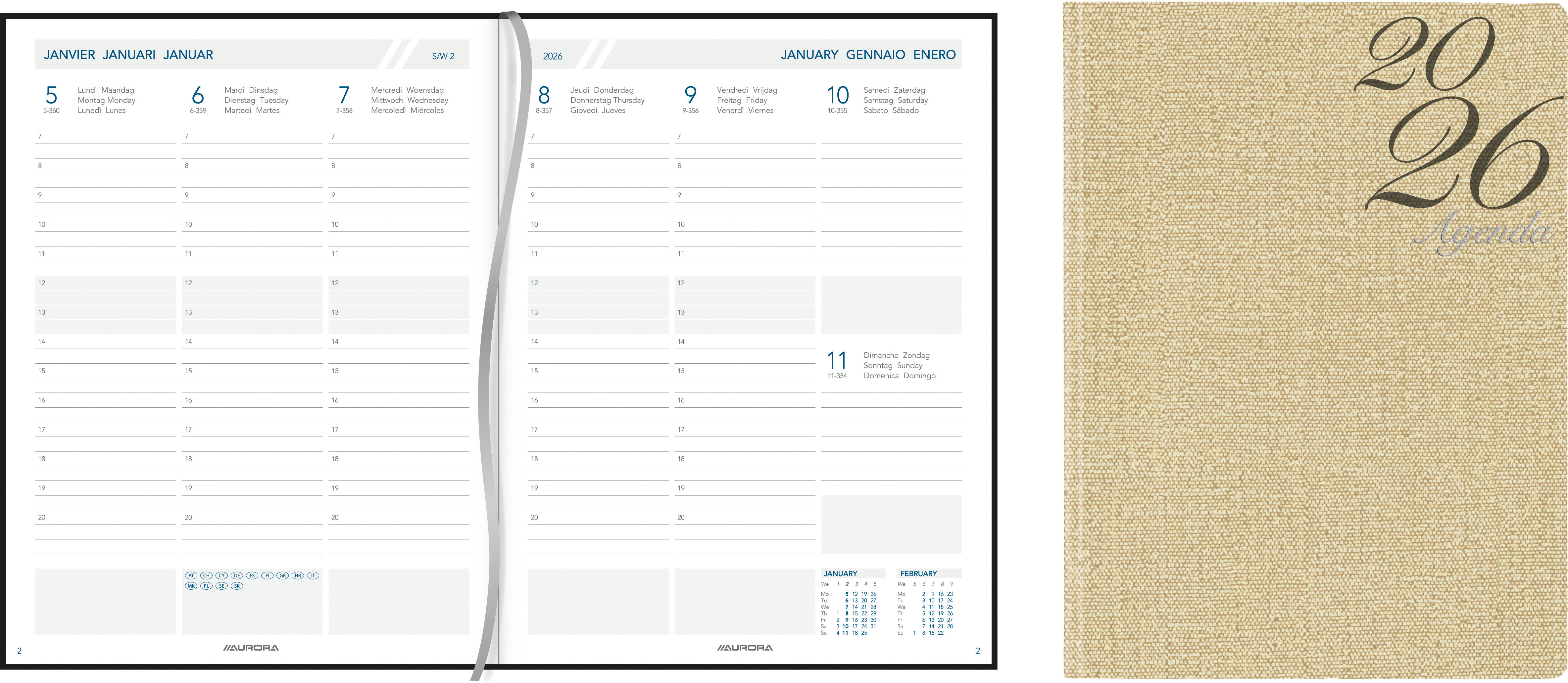 AURORA Agenda Canapa Business 2026 2912 1W/2S ass. ML 15M 17.5x22.5cm