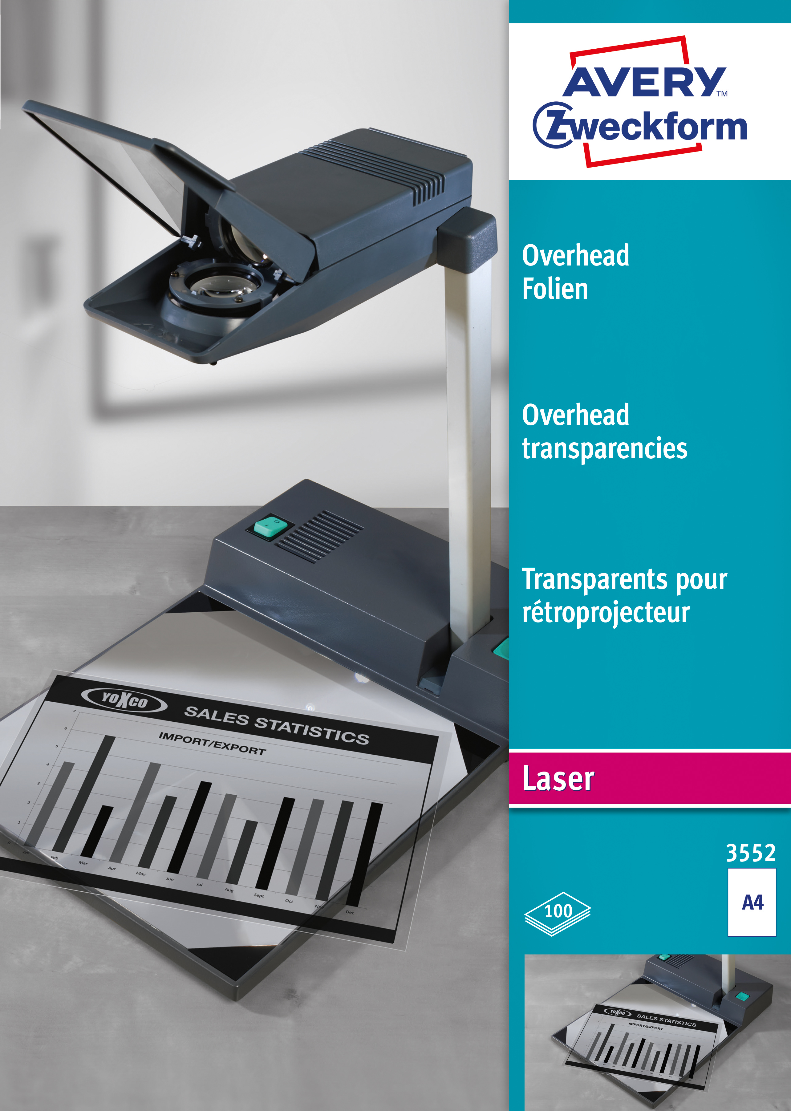 AVERY ZWECKFORM Overhead-Folie A4 3552 0,10mm Laser 100 Blatt