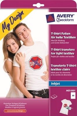 AVERY ZWECKFORM Textilfolie Iron-on A4 MD1001 Inkjet helle Textilien 5 Stk.