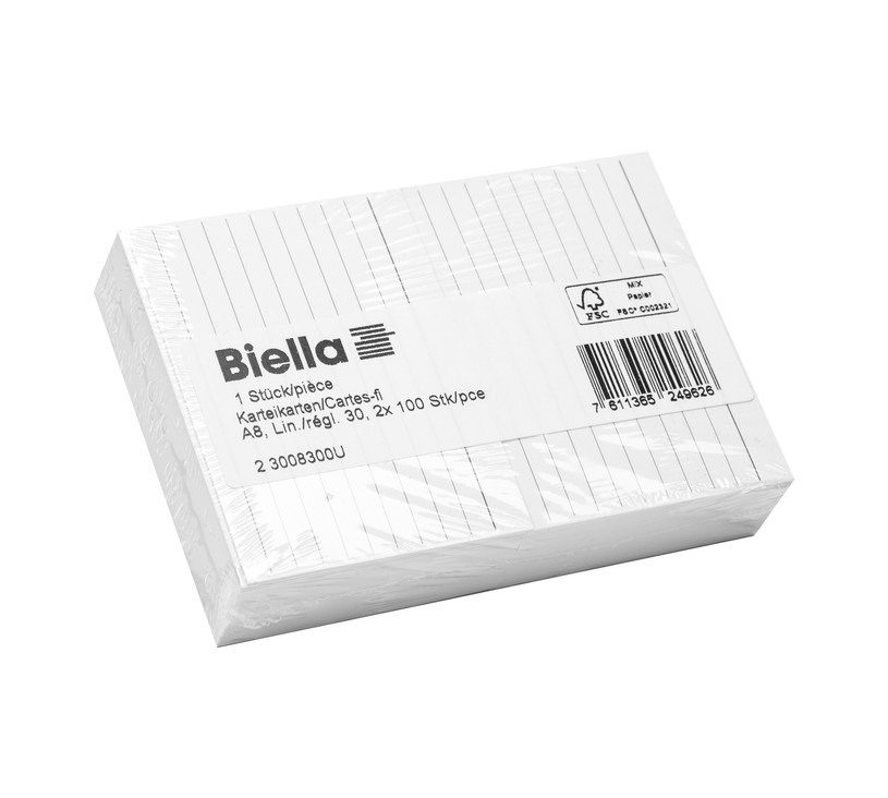 BIELLA Karteikarten liniert 30 A8 23008300U weiss 200 Stück
