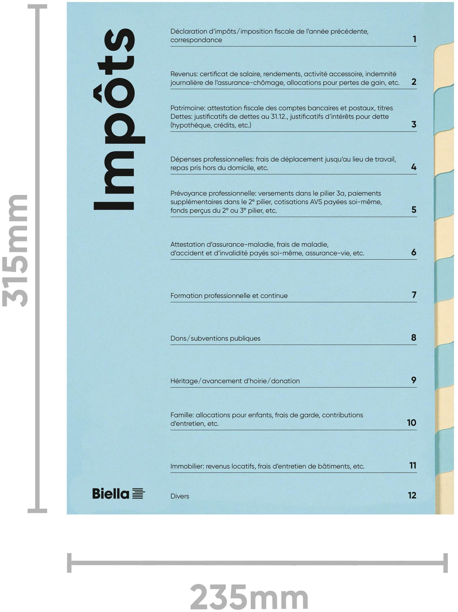 BIELLA Spezialmappe Steuern A4 326011291U französisch 12 Fächer