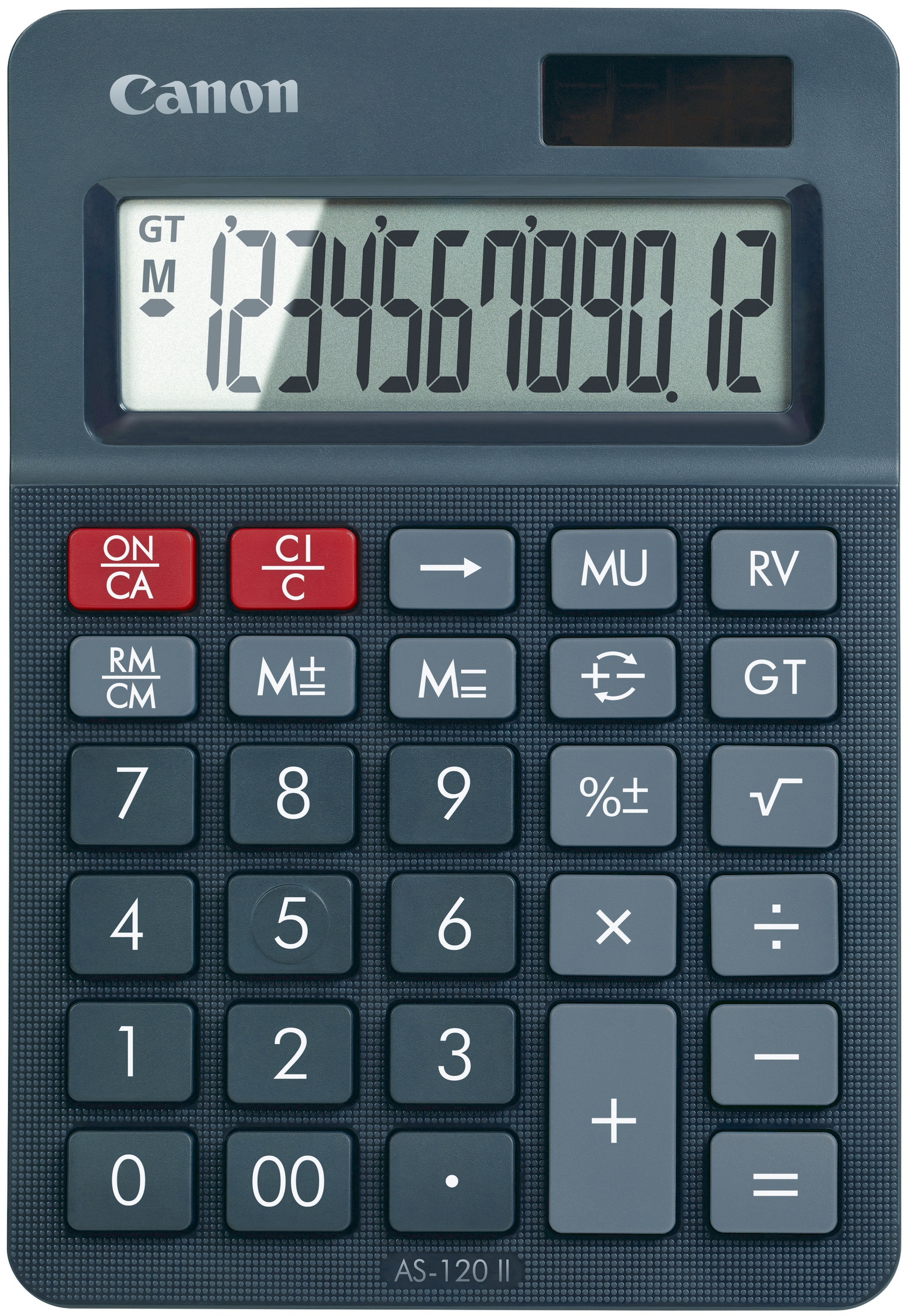 Der AS-120 II ist ein Tischrechner mit einem 12-stelligen angewinkelten Display. Er unterstützt auch Markup- und Rückwärts-Funktionen. Die beeindruckende Gesamtsummenspeicher-Funktion erleichtert komplexe Berechnungen, indem sie die Zwischensummen nach jeder Berechnung speichert und die Gesamtsummen mit einem einzigen Tastendruck berechnet. Einige Teile des AS-120 II Rechners wurden aus recyceltem Material von Canon-Produkten hergestellt.