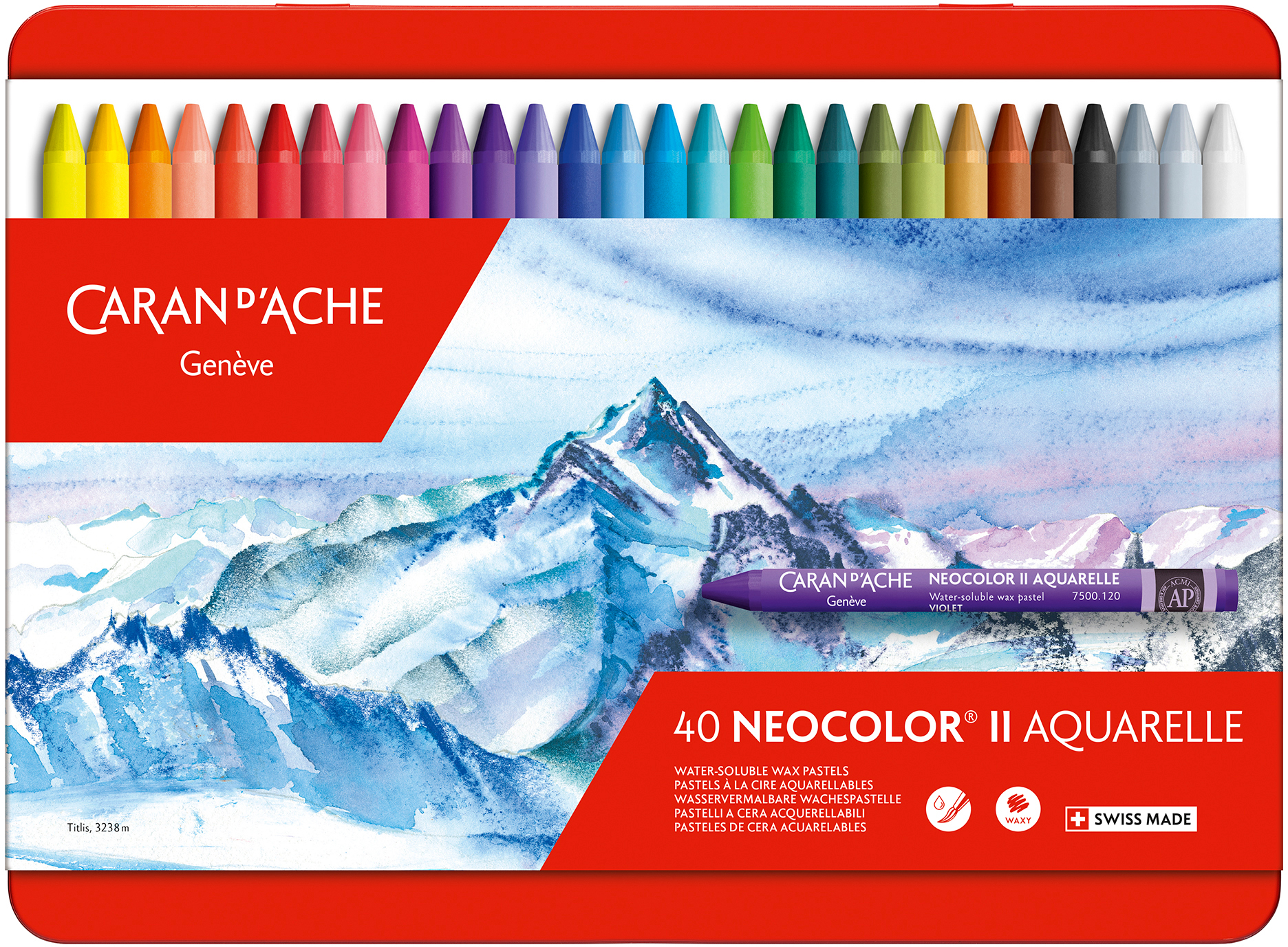 Produktinformationen "CARAN D'ACHE Wachsmalkreide Neocolor II 7500.340 40 Farben ass. Metallbox"