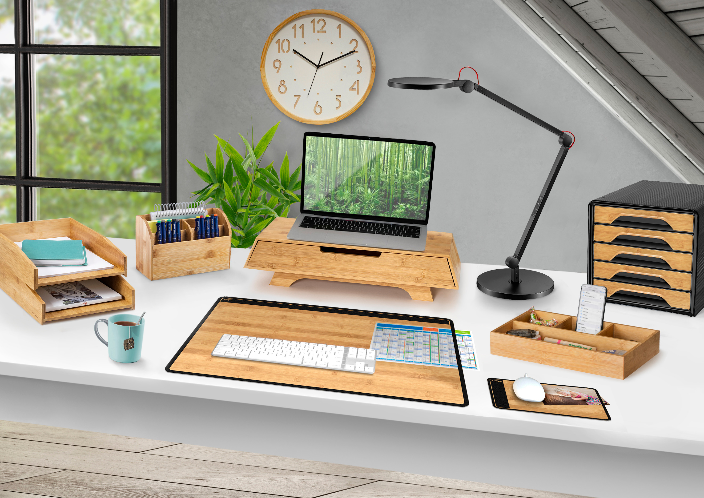 Diese schöne Schreibunterlage in Buche Optik sorgt im Handumdrehen für Ordnung und Übersicht auf dem Schreibtisch.Die Unterlage ist mit einer extrem reflexarmen und transparenten PVC Oberseite ausgestattet, wodurch Sie jederzeit freie Sicht auf die eingelegten Dokumente, Telefonnummer oder sonstige wichtige Notizen haben. Mit rutschfester Schaumstoff-Unterseite Für alle Mäuse geeignet Abwischbar Aus phthalatfreiem PVC. Mit umweltfreundlichen, lösungsmittelfreien Druckfarben bedruckt, Greenguard Gold zertifiziert. Abmessungen: 585 x 385x 2 mm.