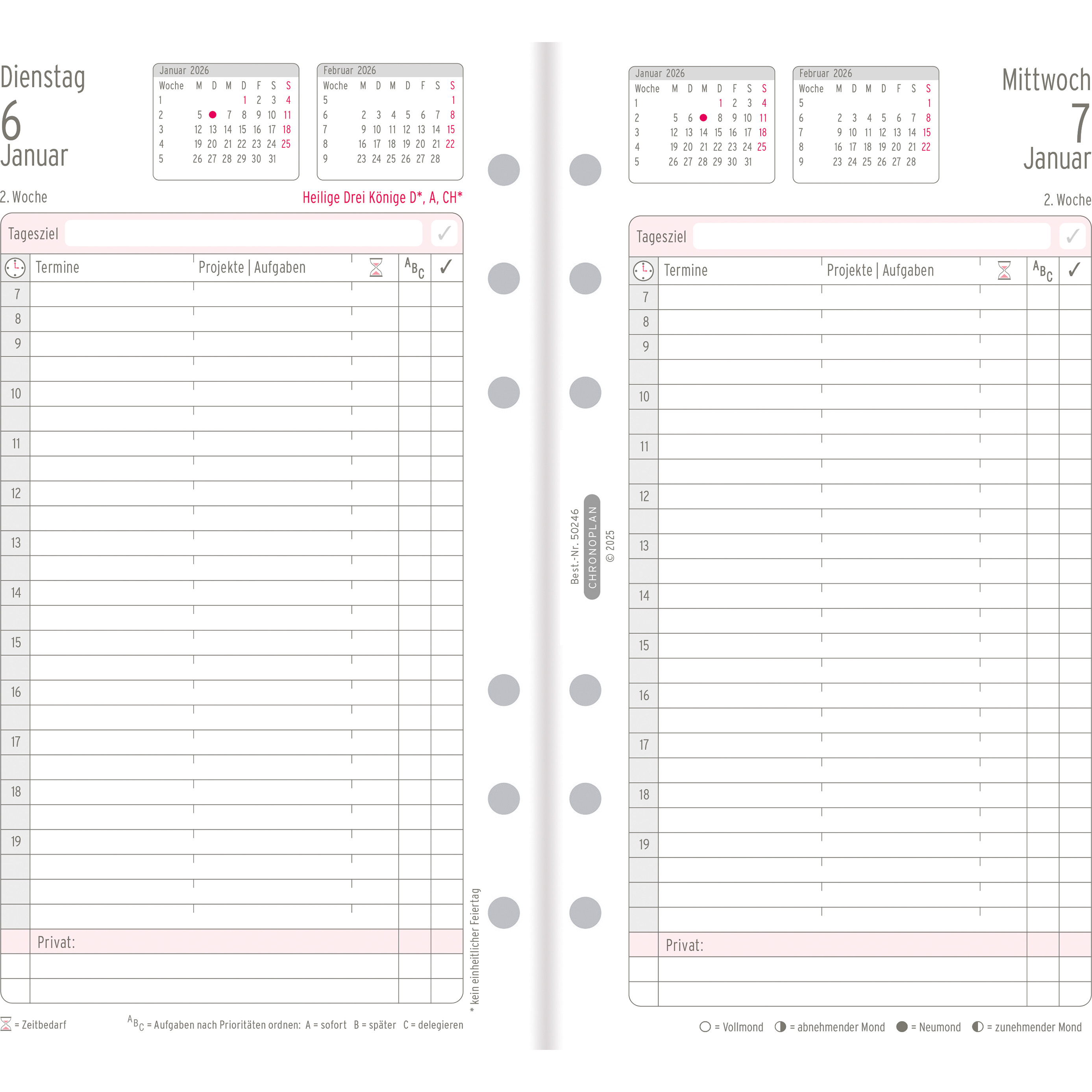 CHRONOPLAN Ersatz Tagesplan 2026 50246Z.26 1T/1S Midi