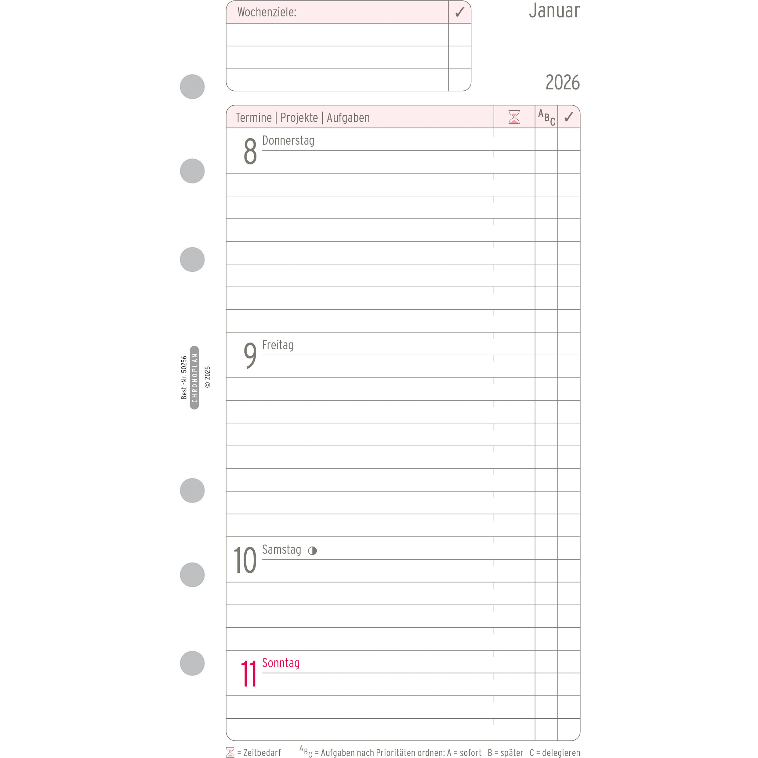 Produktinformationen "CHRONOPLAN Ersatz Wochenplan 2026 50256Z.26 1W/2S in Zeilen Midi"