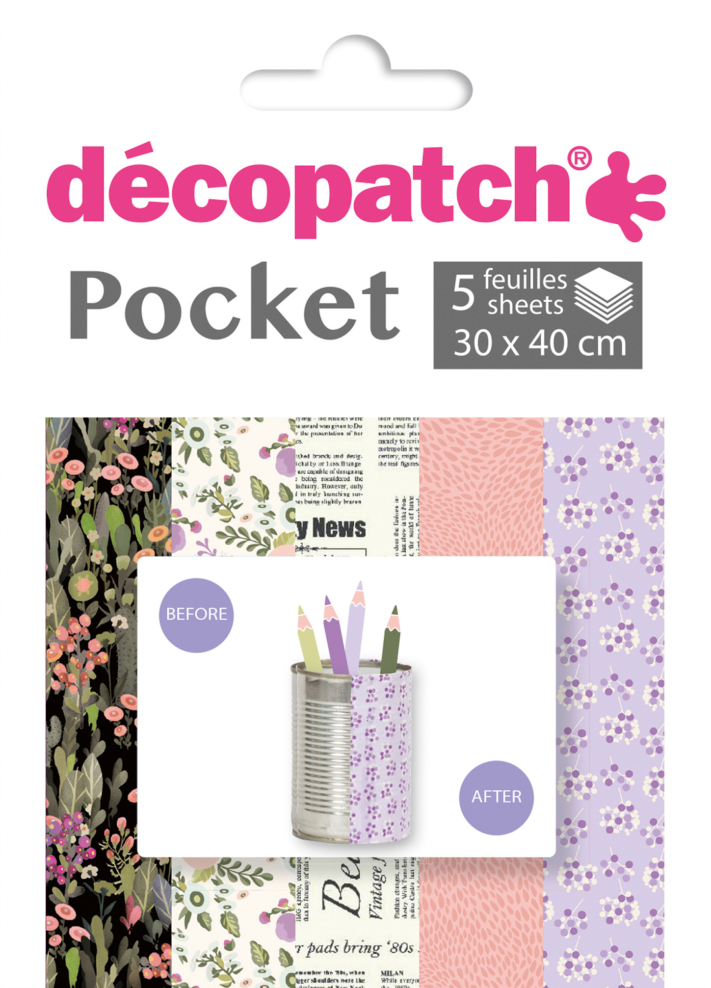 Decopatch-Bögen sind für viele Trägermaterialien geeignet: Karton, Styropor, Holz, Metall, Keramik und mehr. Einfach mit Decopatch-Klebelack (nicht im Lieferumfang enthalten) auftragen. Inhalt: 5 Bögen à 30 x 40 cm. Designs assortiert. Für flache oder unregelmässige Oberflächen geeignet.