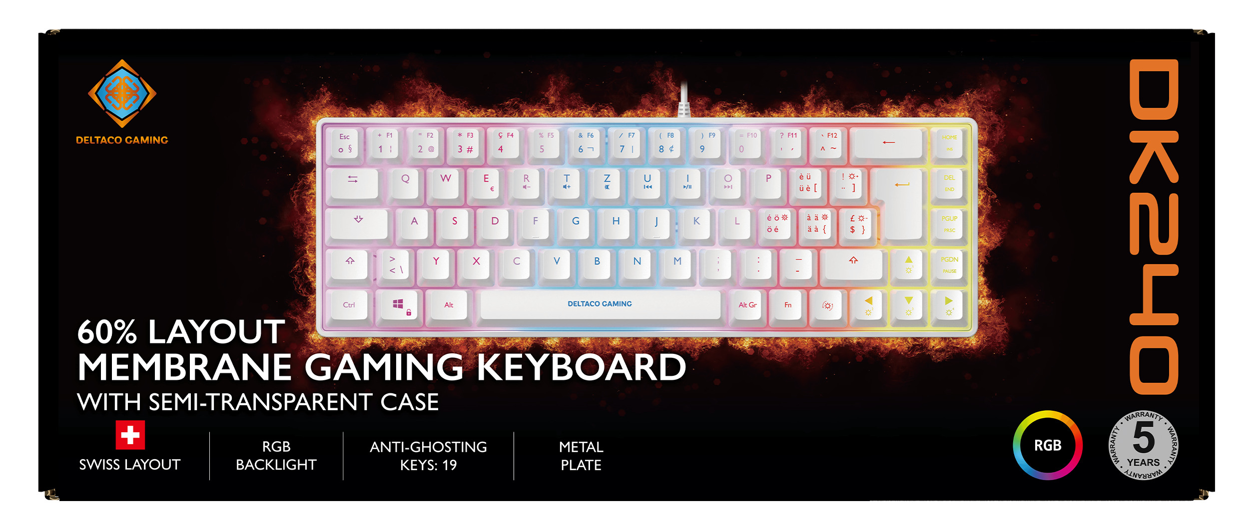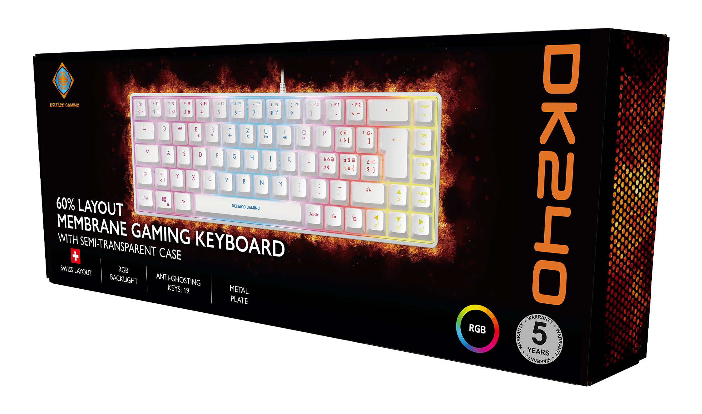 DELTACO TKL Gaming Keyboard membrane GAM-158-W RGB CH-Layout, White