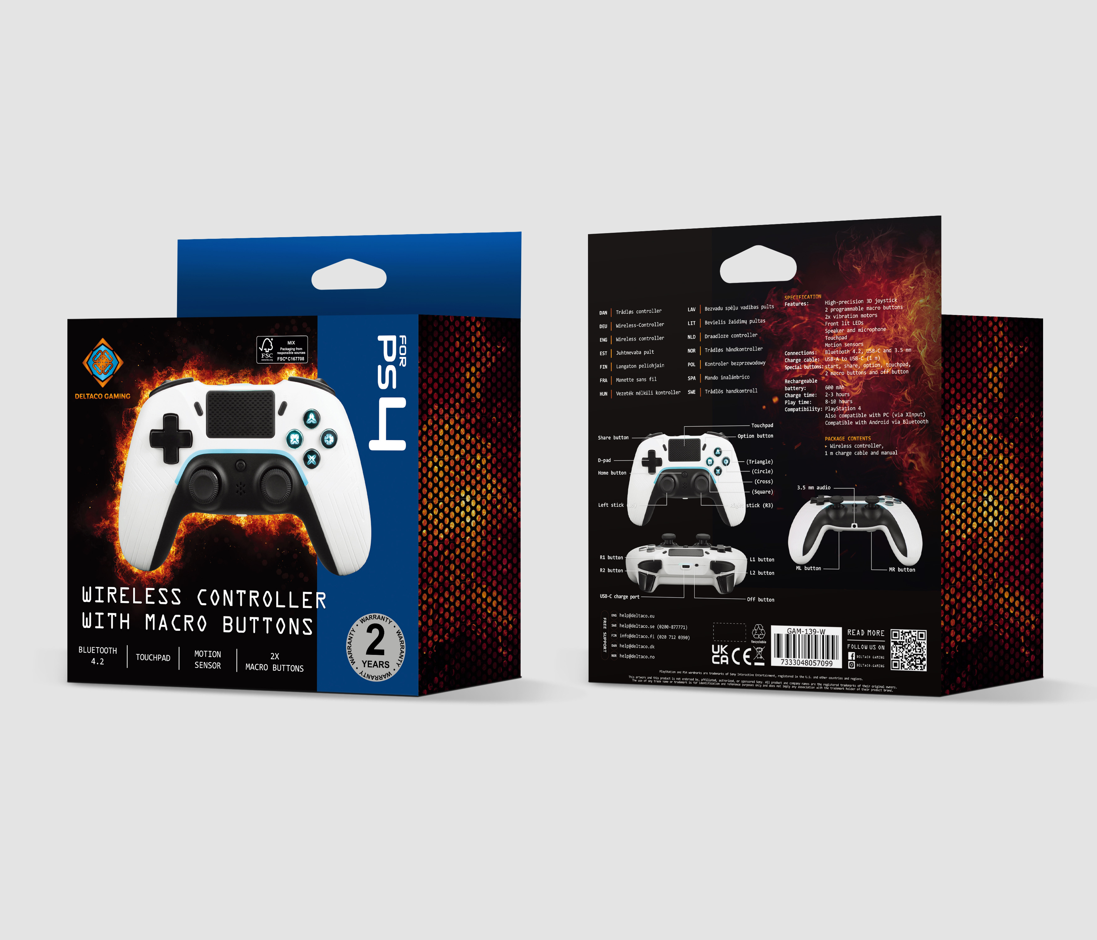 DELTACO Wireless Controller PS4 GAM-139-W White