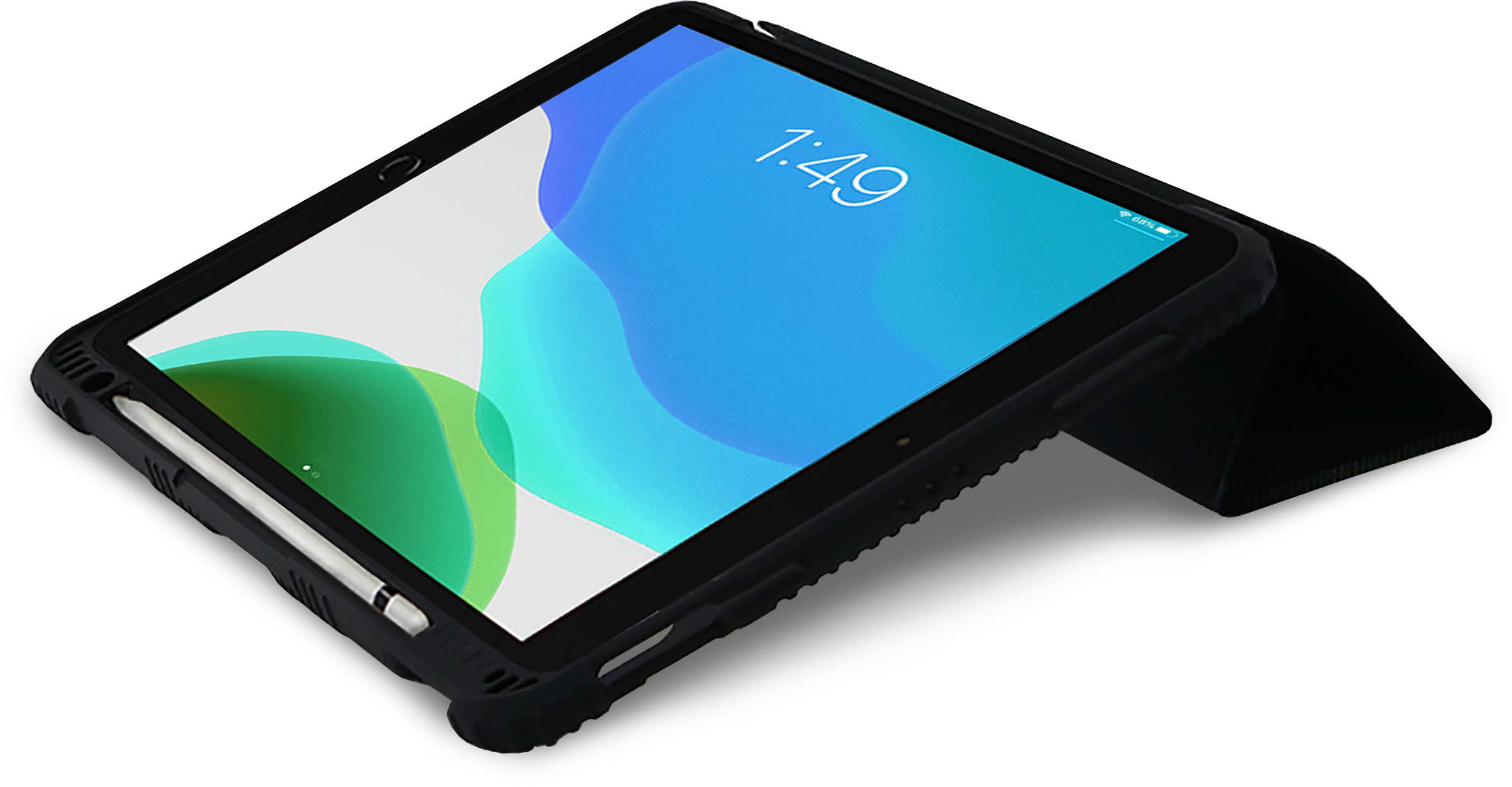 Maximale Produktivität und Vielseitigkeit. Schlank, mit transparenter Rückseite und konzipiert für hochwertigen Sturzschutz schützt das Tablet Folio in Schulungsräumen, unterwegs, im Büro und überall sonst. Passgenau für das iPad 10.2" mit präzisen Ausschnitten für Kamera, Lautsprecher, Lade- und Kopfhöreranschluss. Standhaft in jeder Situation und auf jeder Oberfläche, ob Schreibtisch, im Zug oder in der Hand. Die Aufstellfunktion mit drei verschiedenen Winkeln bietet für jede Situation eine perfekte Lösung. Die transparente Rückseite der Hülle lässt Raum für eine individuelle Gestaltung mit Aufklebern, Barcodes oder Nummerierungen zur einfachen Wiedererkennung des Geräts. Die Hülle besitzt ausserdem eine integrierte Stifthalterung, damit ist der Eingabestift immer in Reichweite. Schützt das Gerät zuverlässig; Die Hülle erfüllt den militärischen Schutzstandard MIL-STD-810H.