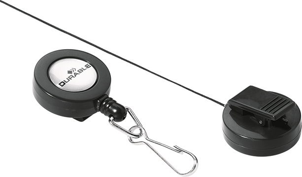 Die bewährte Aufrollmechanik des Ausweiskartenhalters erlaubt einen schnellen Zugriff auf Namensschilder, Zugangskarten, Sicherheits- und Betriebsausweise usw. Kombinierbar mit allen DURABLE-Namensschilder, die eine Clip-Ausstanzung haben. Mit rückseitiger Krokoklemme aus Kunststoff und Federhaken.