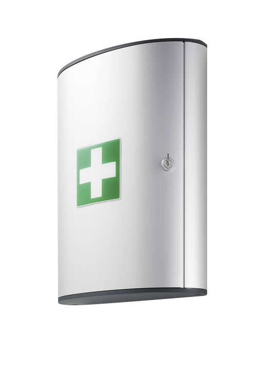 - Inkl. Aufkleber mit Erste Hilfe Kreuz in grün-weiss, Zylinderschloss mit zwei Schüsseln und Montageset