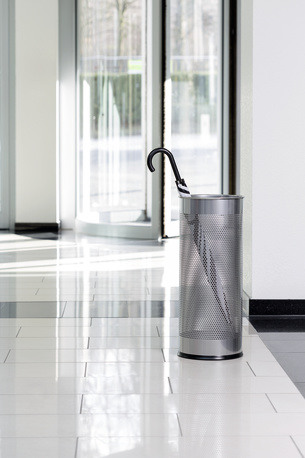 Stilvoll und eleganter Schirmständer mit dekorativem, perforiertem Streifen. Ideal für Eingangsbereiche, im Büro, im Ladengeschäft oder Zuhause. Hergestellt aus Metall mit Epoxidharz-Beschichtung.