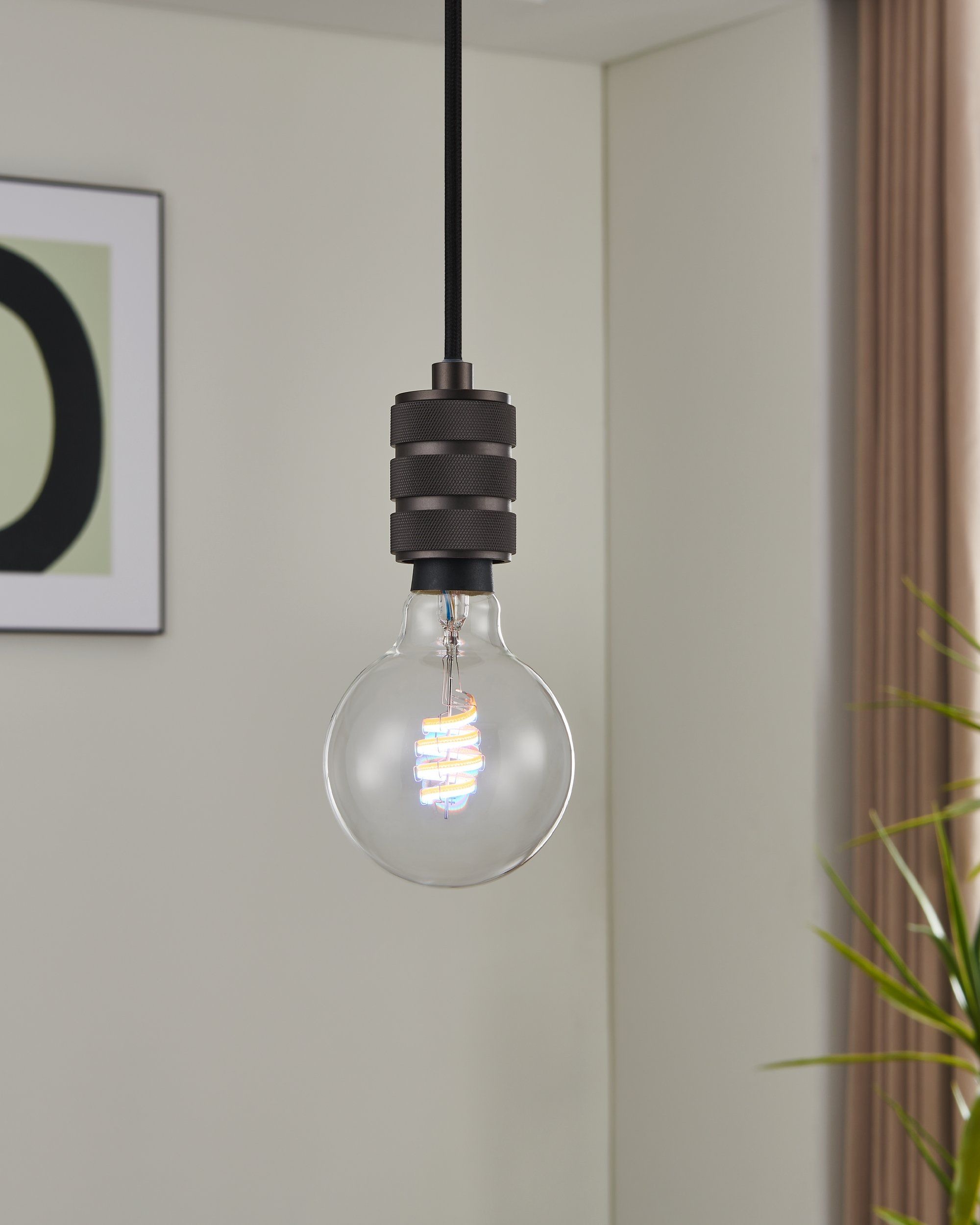 Das E27 LED Leuchtmittel (G95) aus dem Smart Home Sortiment connect.Z ist aus klarem Glas mit filamentförmigen LEDs gefertigt. Die LED-Glühbirne spendet angenehmes Licht ganz nach Ihren Wünschen. Sie haben die Wahl zwischen warmweissem, neutralweissem und kaltweissem Licht. Die Steuerung der Lampe erfolgt via kostenloser App (AwoX Home Control) und ermöglicht Ihnen den Zugriff auf weitere Komfortfunktionen wie Dimmen, Timer, Anwesenheitssimulation und vielen mehr. Die Ansteuerung des Leuchtmittels erfolgt über Bluetooth sowie ZigBee 3.0 und ermöglicht zudem die Steuerung über kompatible Sprachassistenten. Mit Hilfe einer separat erhältlichen Bridge ist es Ihnen möglich auch smarte ZigBee 3.0 Leuchten anderer Hersteller in das System zu integrieren (Bitte prüfen Sie hierzu die technische Anforderung des jeweiligen Produkts). Zusätzlich lässt sich das smarte Leuchtmittel auch über die separat erhältliche Fernbedienung steuern. Der Tausch Ihrer herkömmlichen Leuchtmittel durch EGLO connect.Z Leuchtmittel ermöglicht Ihnen nicht smarte Leuchten smart werden zu lassen und in das System einzubinden.