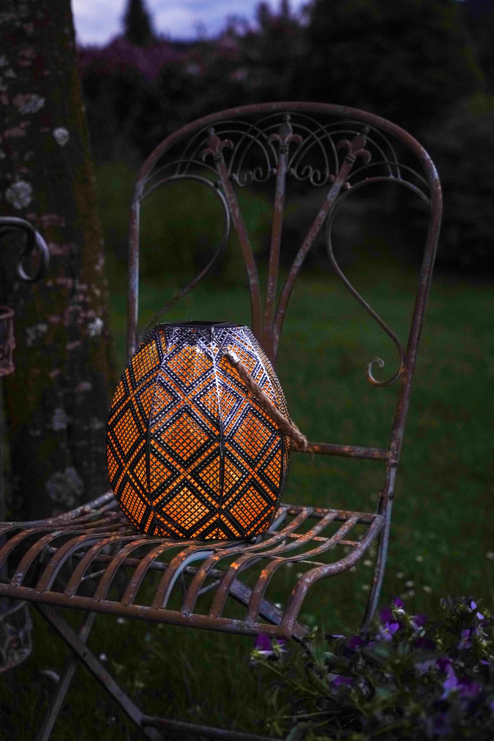 Die LED Solarleuchte wird aus Stahl produziert. Die schicke Solarleuchte mit cut-outs ist in der Farbe silber, antik. Der Akku ist bereits integriert und die Leuchtdauer ist bei vollem Akku 6 bis 8h.