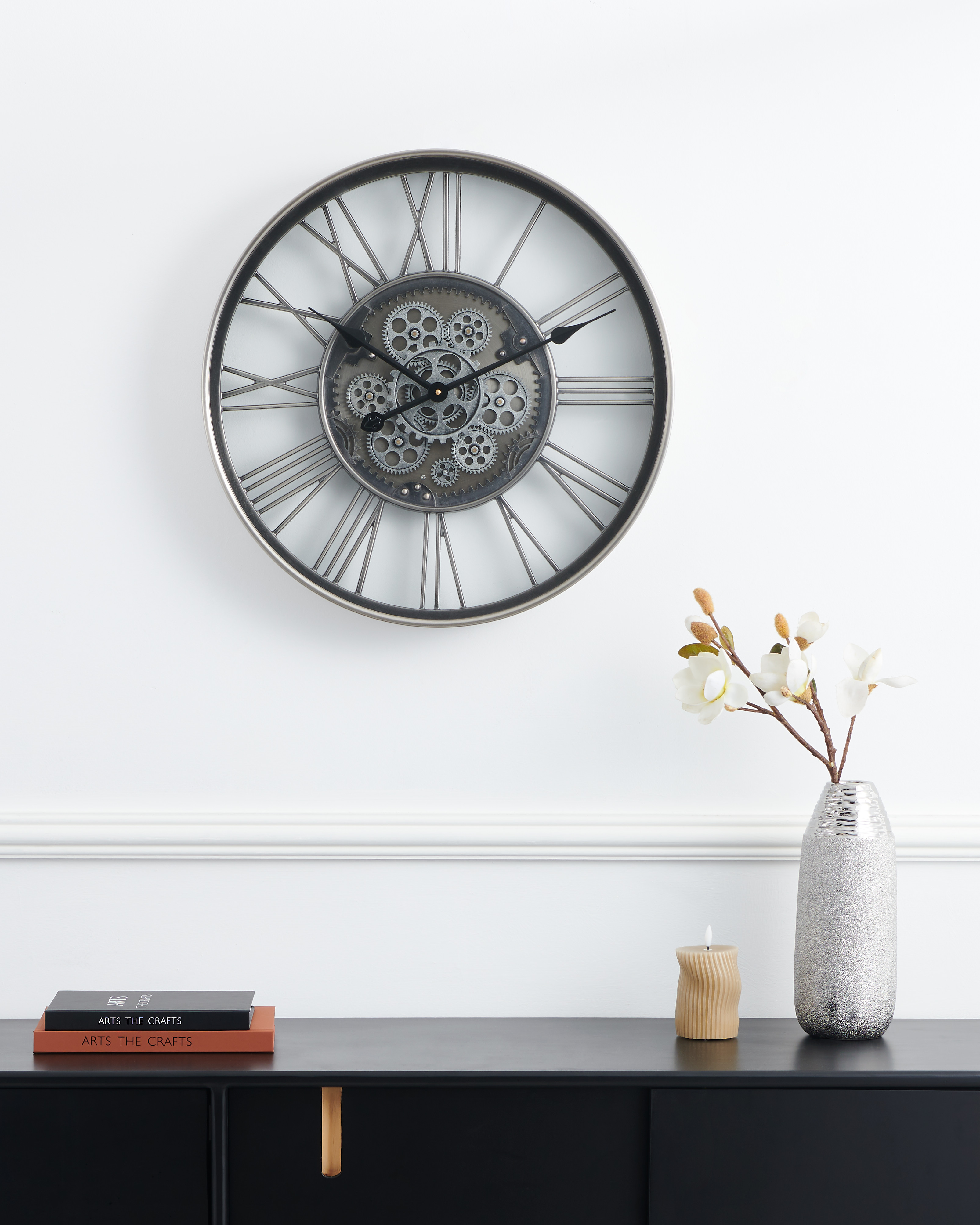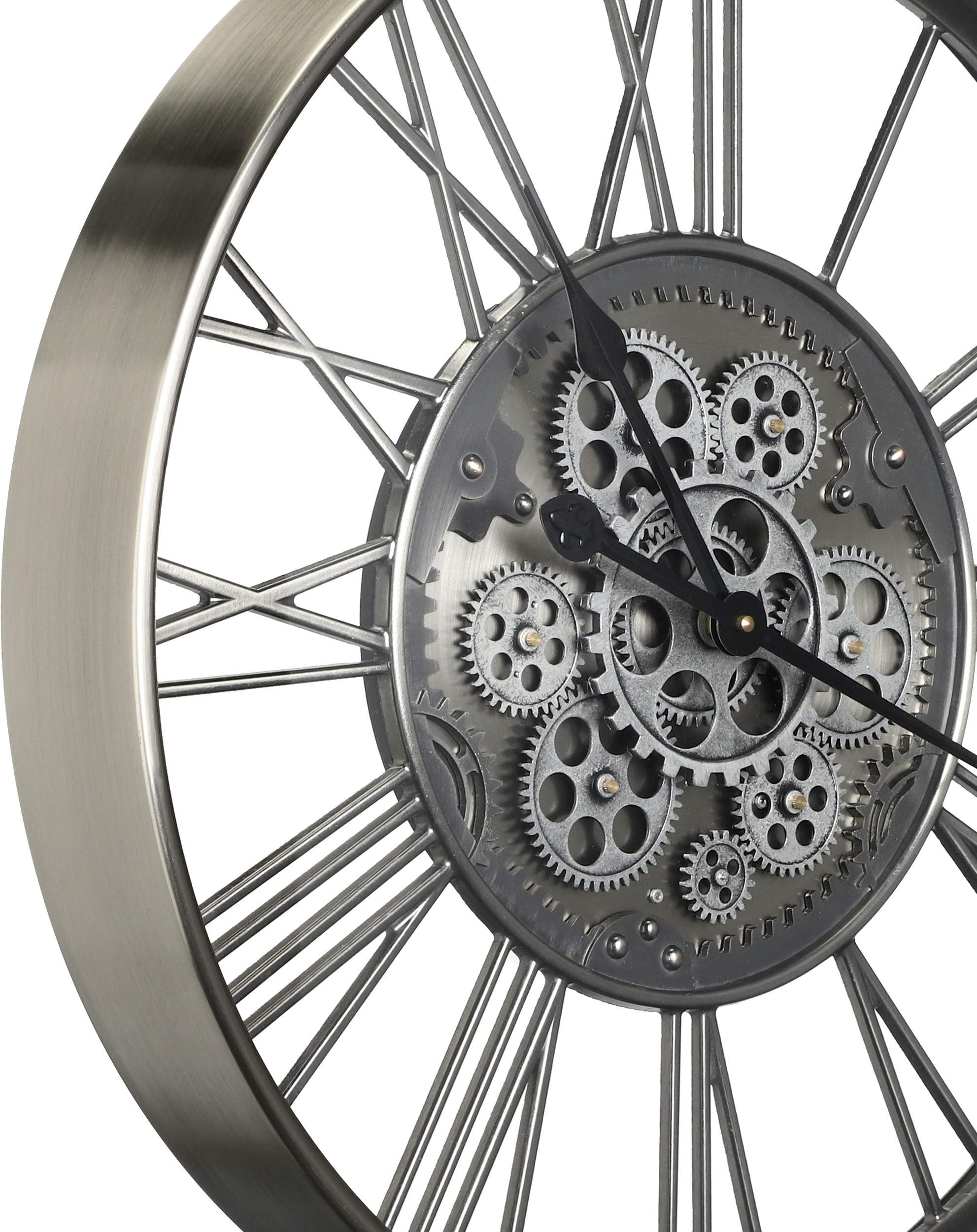 Behalte mit der KENEMA Wanduhr immer die Zeit im Blick. Mit ihrem Industrial und eleganten Design schmückt dieses Deko-Accessoire deine Wand im Wohn-Essbereich, Schlafzimmer oder Office. Die mechanisch-geformte Uhr in Nickel-Antik-Optik, fügt sich mit ihrem hochwertigen Materialien und den schwarzen Zeigern bestens in jede Einrichtung ein. Die Wanduhr wird exklusive Batterien geliefert. Mit dem Einstellrad auf der Rückseite kannst du bequem die Zeit einstellen. Das Bewegen der Zeiger von Hand kann das Uhrwerk beschädigen.