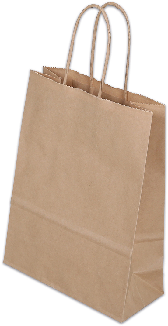 Papiertasche mit gedrehter Kordel aus braunem Kraftpapier mit einer Papierqualität von 100 g/m². Für verschiedene Anwendungen. Die Traglast beträgt rund 3kg.
