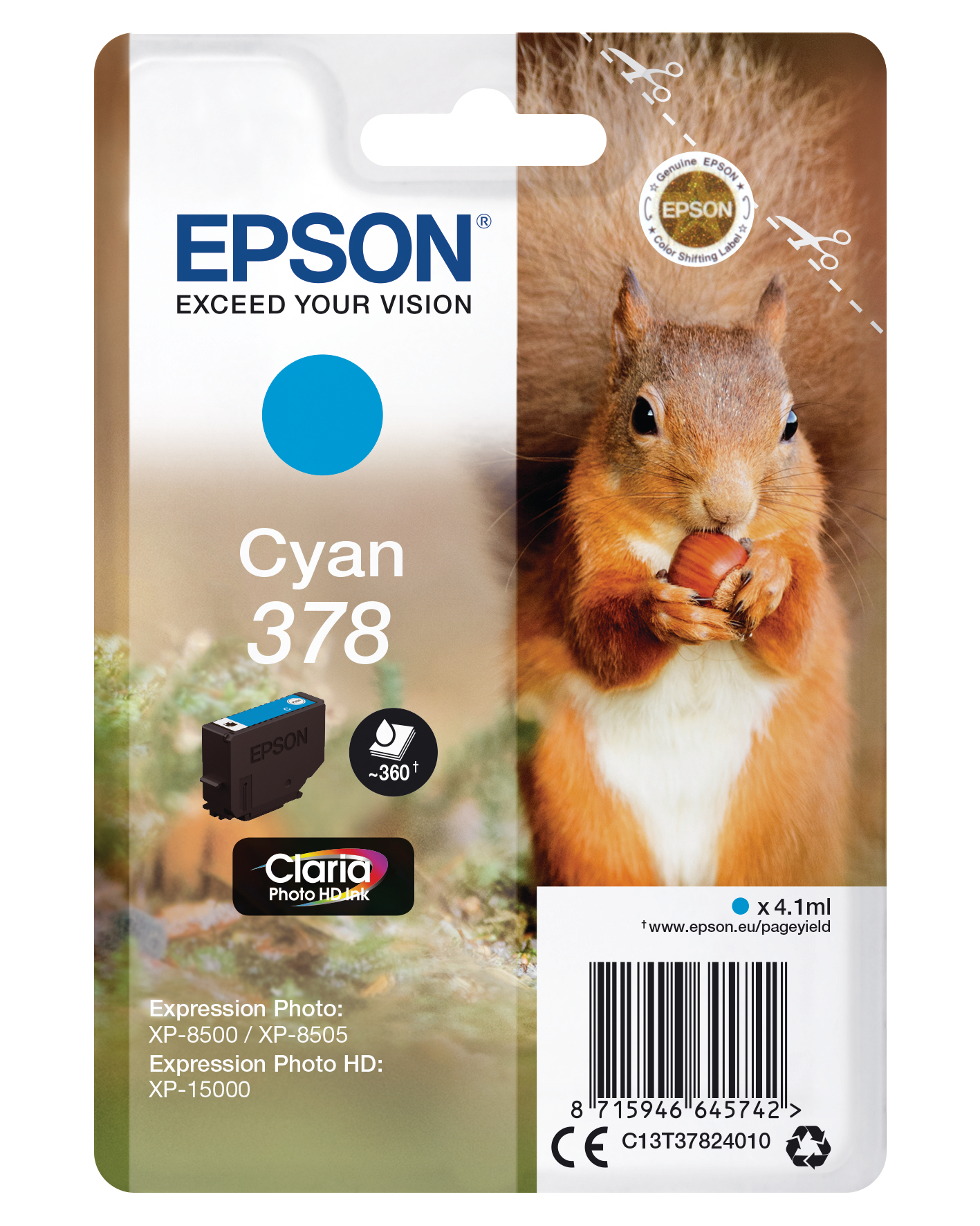 EPSON Tintenpatrone 378 cyan T378240 XP-8500/8505/15000 360 Seiten